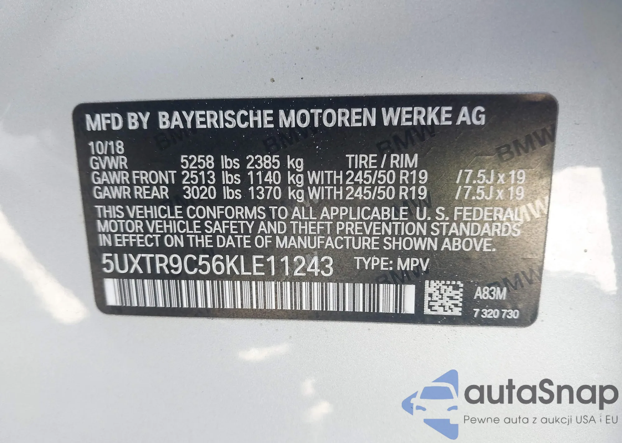 VIN: 5UXTR9C56KLE11243