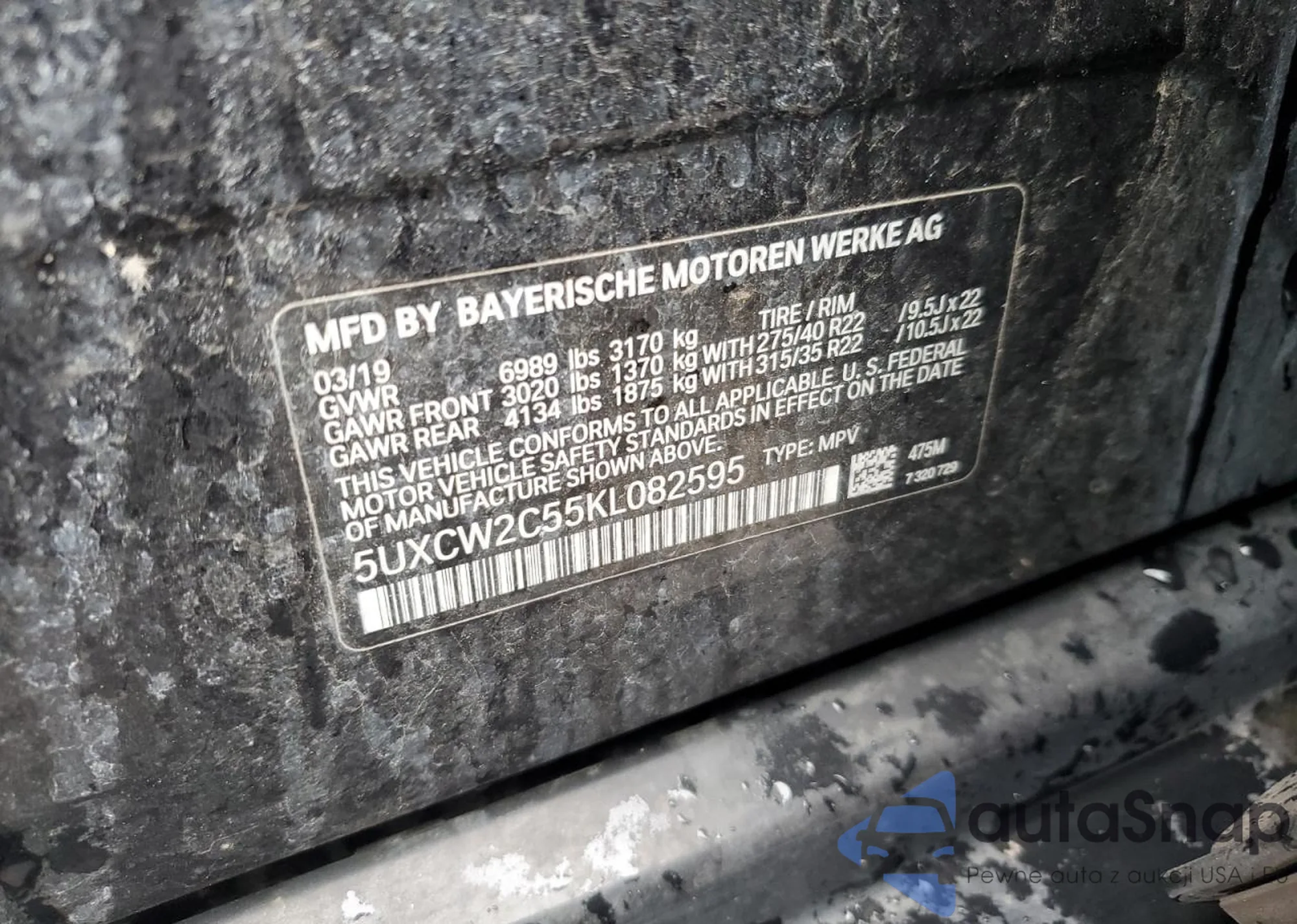 VIN: 5UXCW2C55KL082595