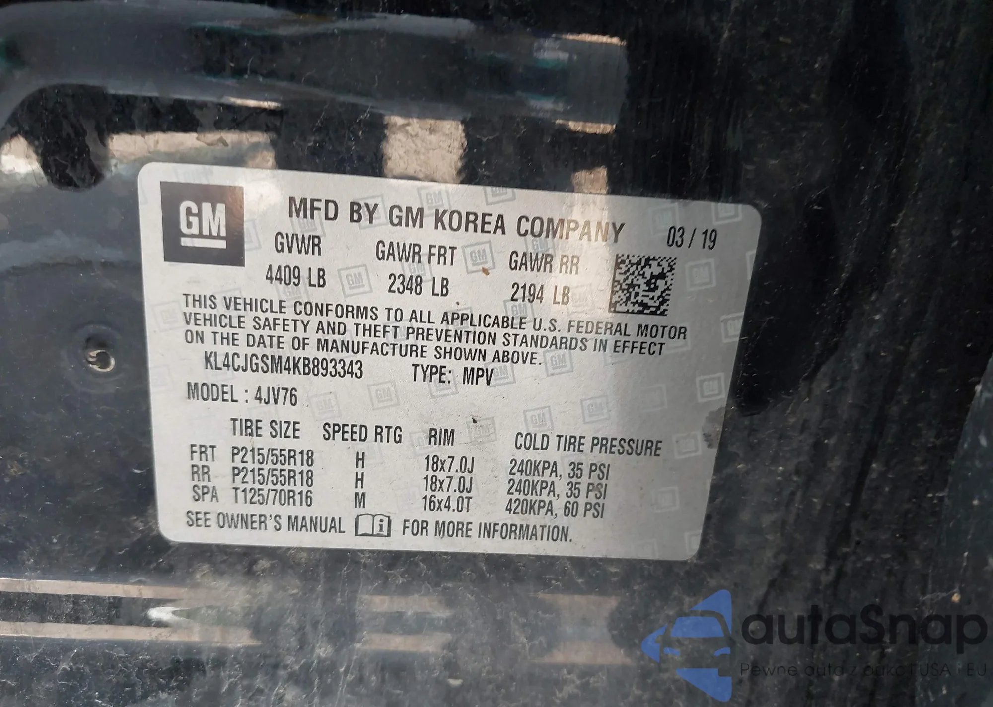 VIN: KL4CJGSM4KB893343
