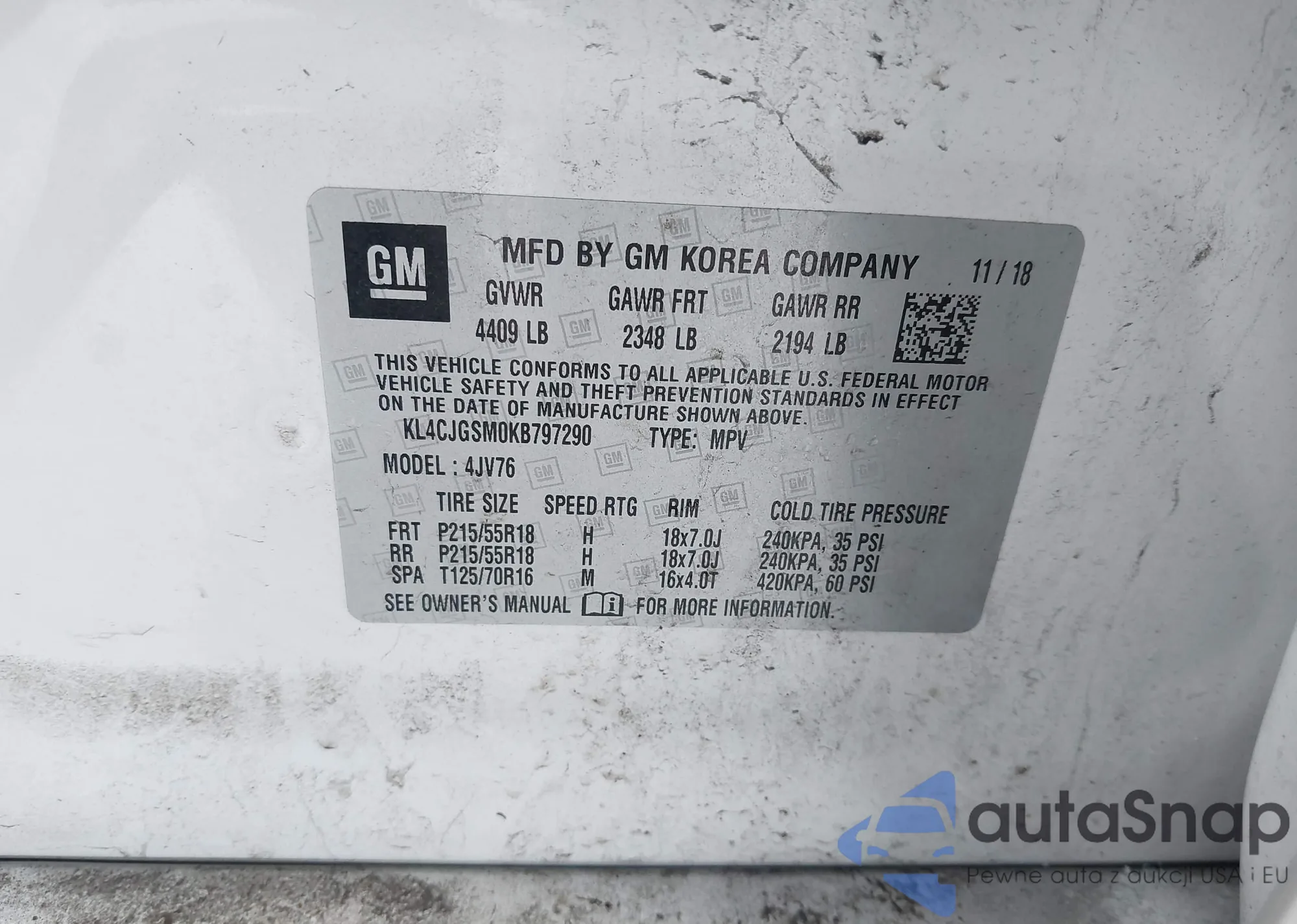 • VIN: KL4CJGSM0KB797290