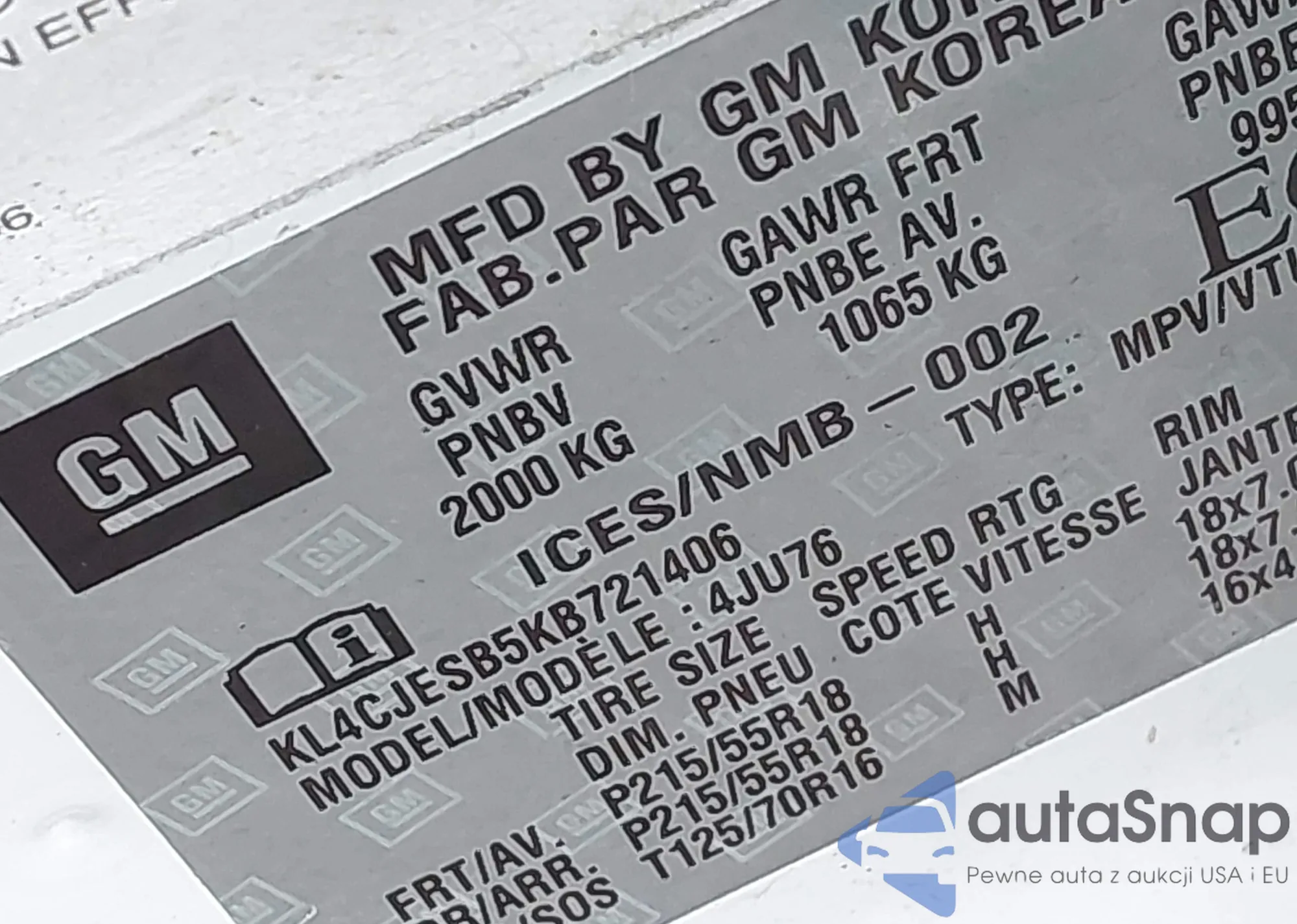 VIN: KL4CJESB5KB721406