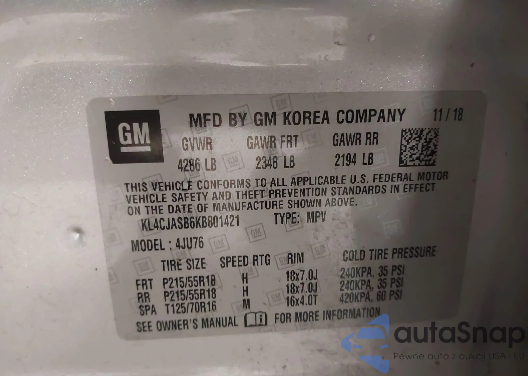 VIN: KL4CJASB6KB801421