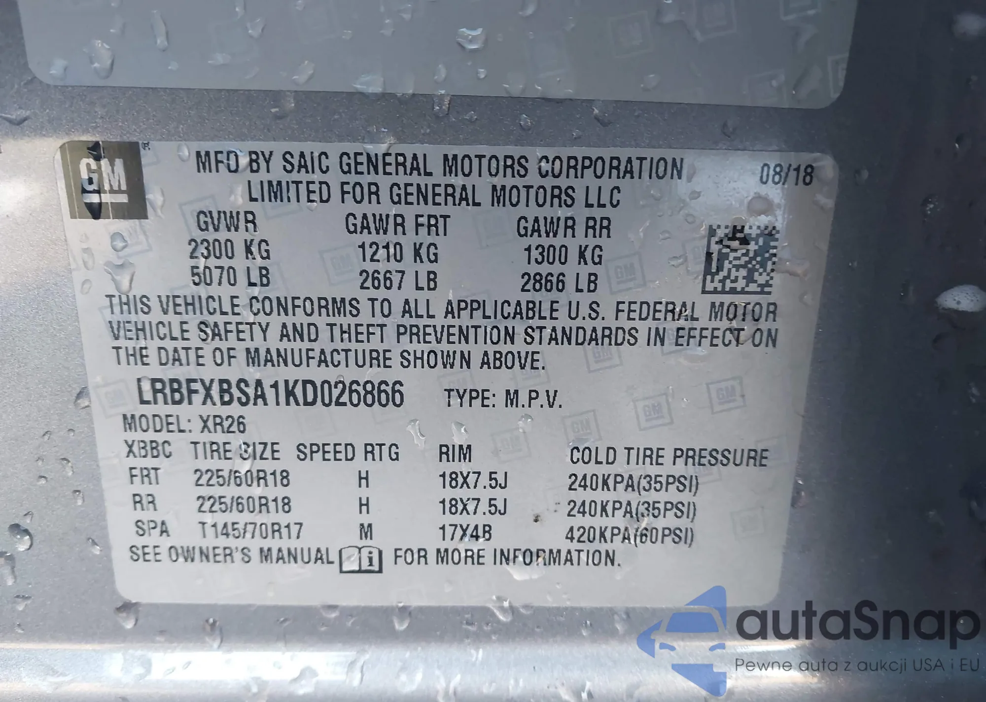 Автомобиль Buick Envision 2019 (VIN LRBFXBSA1KD026866) ранее не участвовал в торгах. Документы чистые, пробег соответствует или ниже среднего по рынку. Продаётся страховой компанией — рекомендуем покупку. Доставка в порт займет около 6–8 недель.