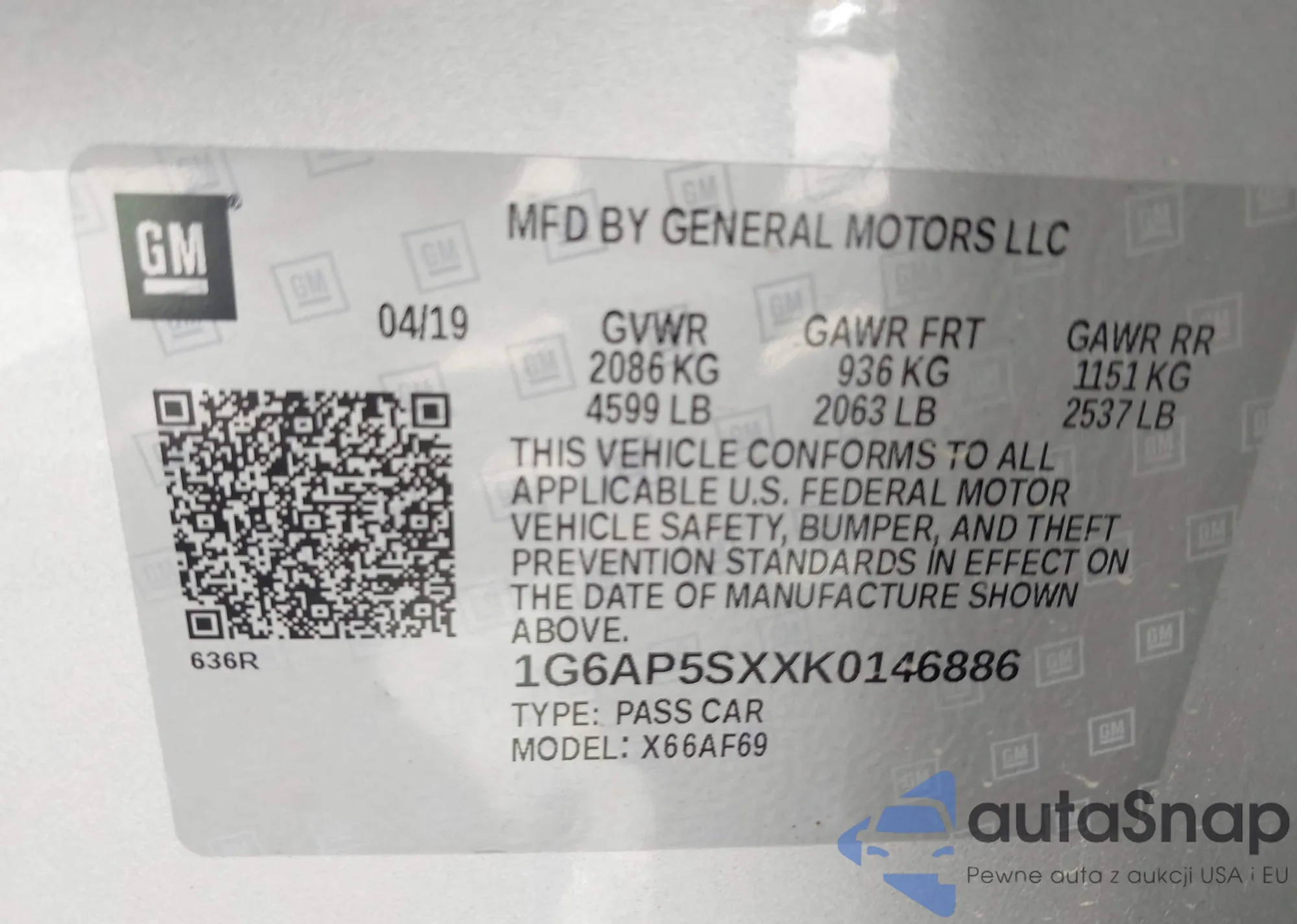 VIN: 1G6AP5SXXK0146886