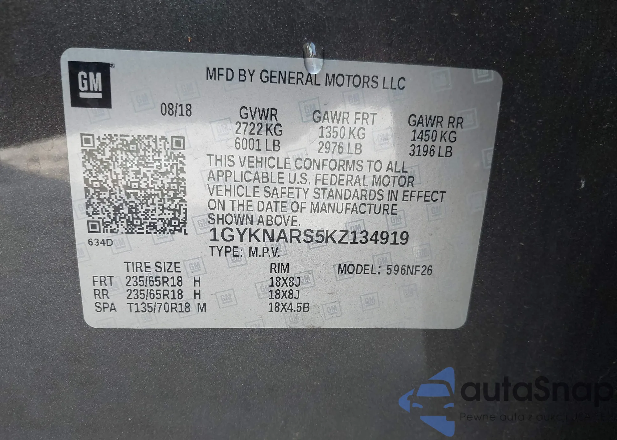 VIN: 1GYKNARS5KZ134919