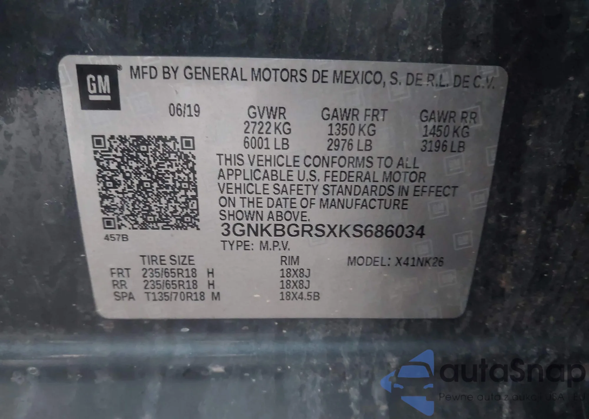 Автомобиль Chevrolet Blazer 2019 (VIN 3GNKBGRSXKS686034) ранее не участвовал в торгах. Документы чистые, пробег соответствует или ниже среднего по рынку. Продаётся страховой компанией — рекомендуем покупку. Доставка в порт займет около 6–8 недель.