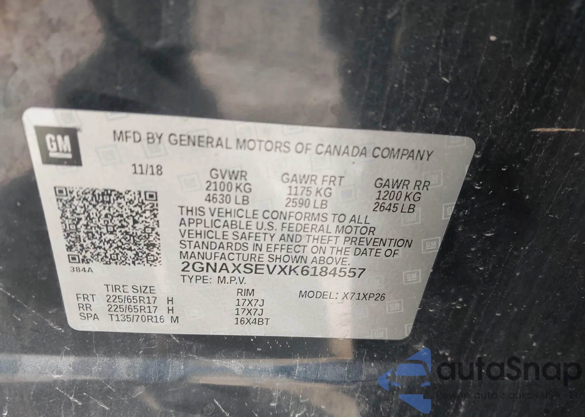 VIN: 2GNAXSEVXK6184557