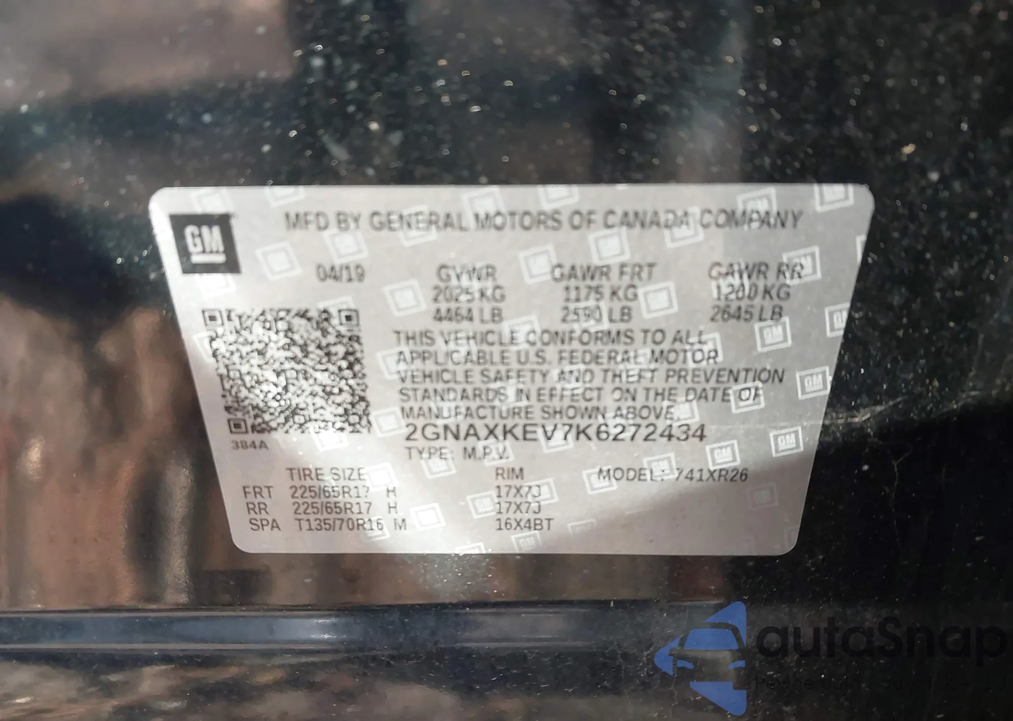 Автомобиль Chevrolet Equinox 2019 (VIN 2GNAXKEV7K6272434) ранее не участвовал в торгах. Документы чистые, пробег соответствует или ниже среднего по рынку. Продаётся страховой компанией — рекомендуем покупку. Доставка в порт займет около 6–8 недель.