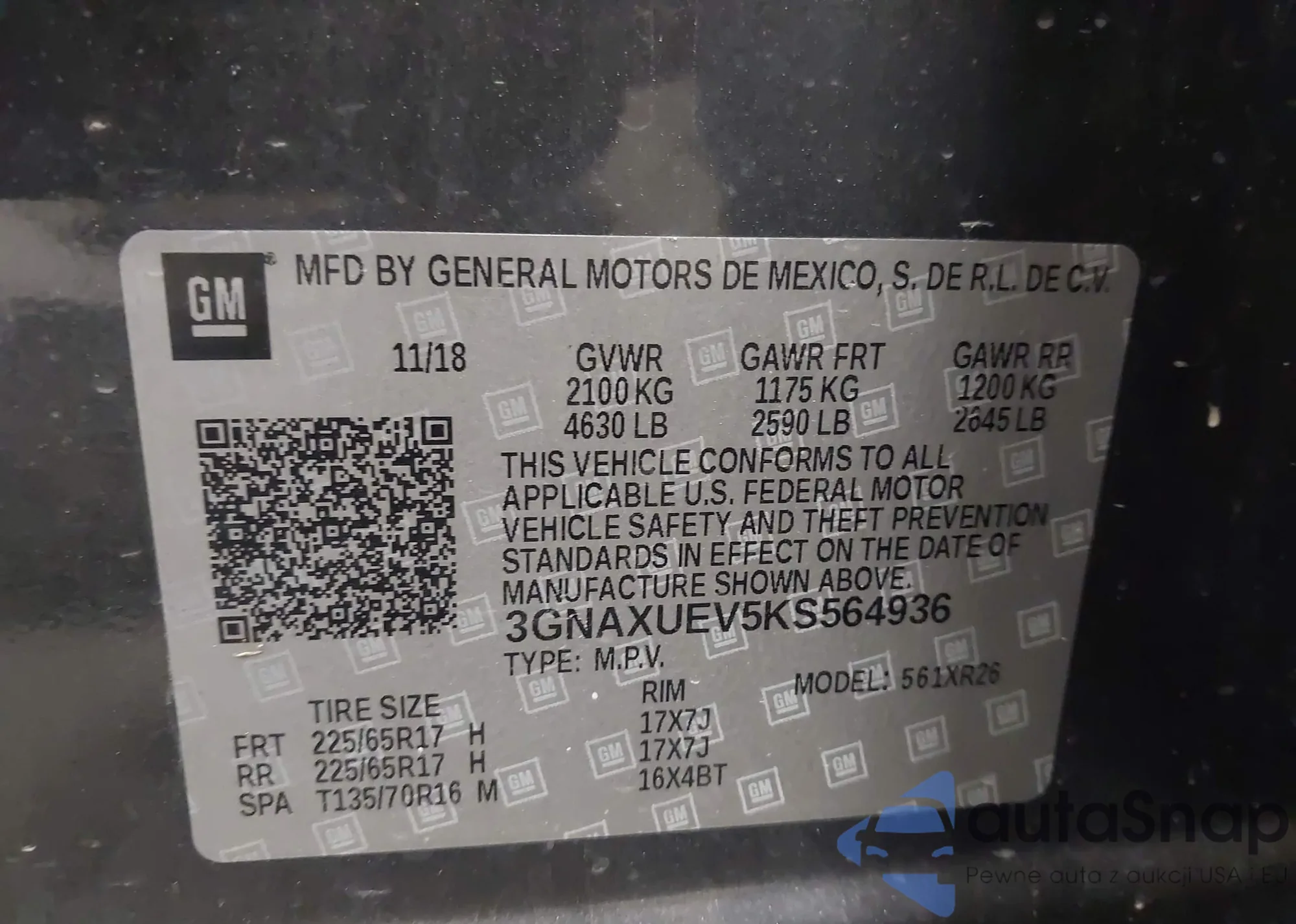 VIN: 3GNAXUEV5KS564936