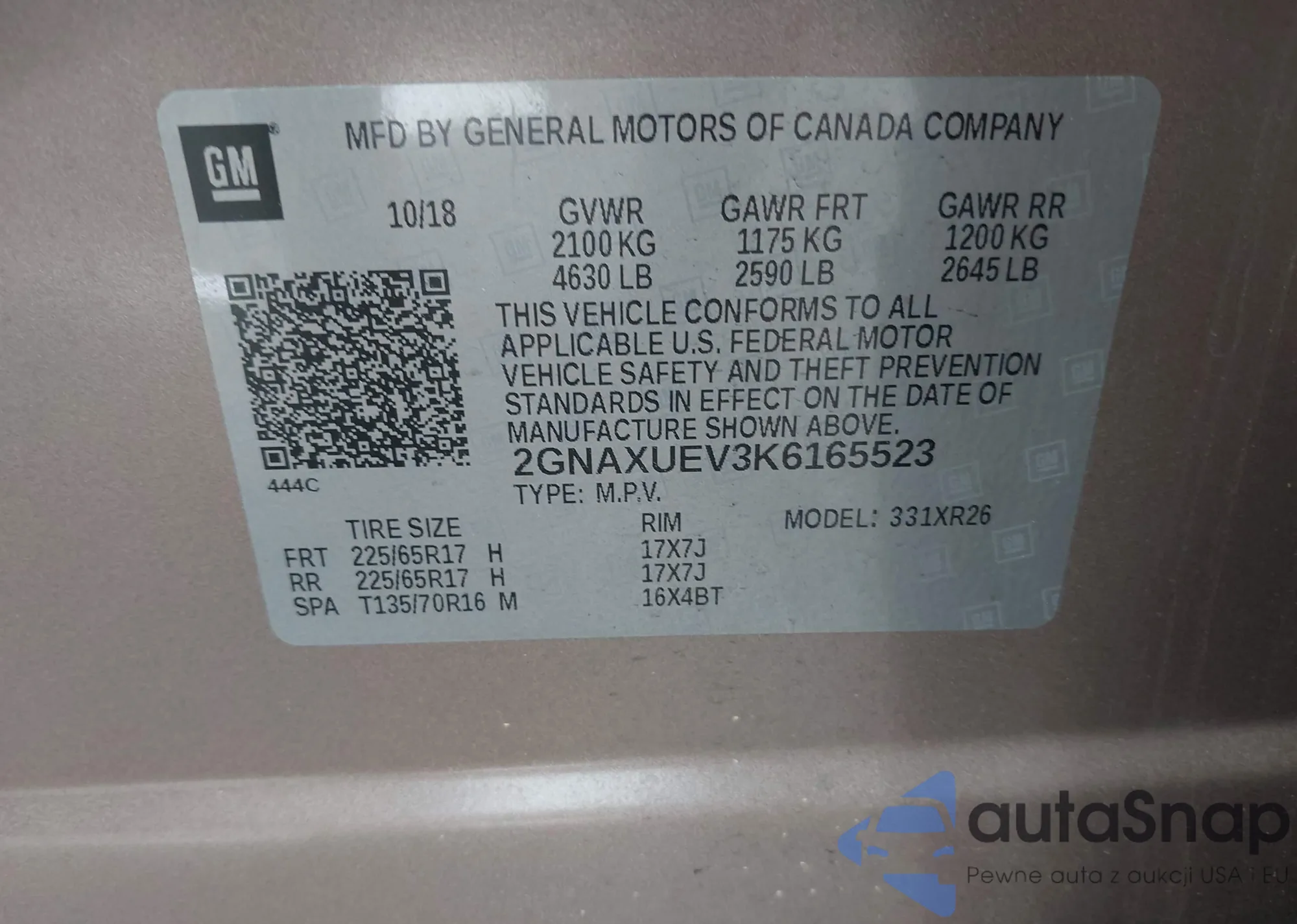 VIN: 2GNAXUEV3K6165523