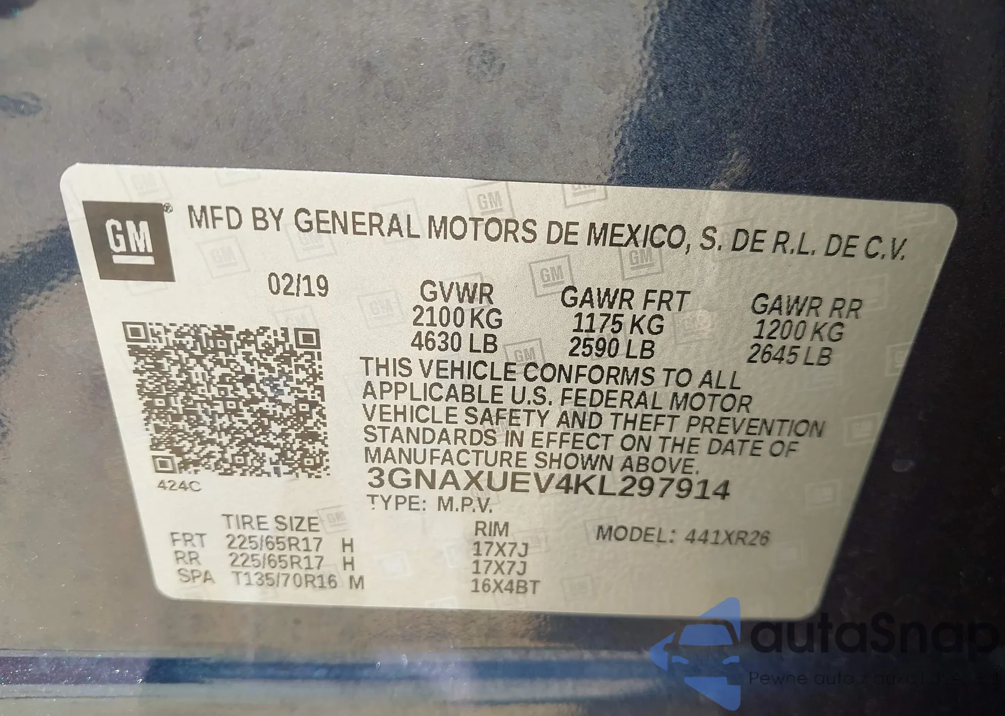 VIN: 3GNAXUEV4KL297914