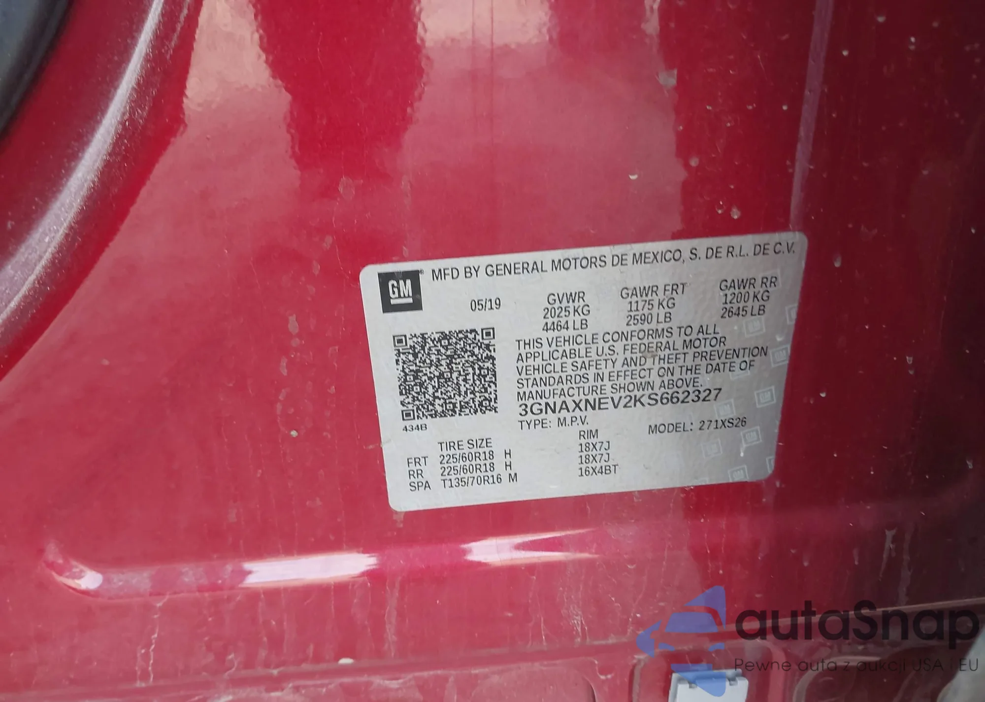 VIN: 3GNAXNEV2KS662327