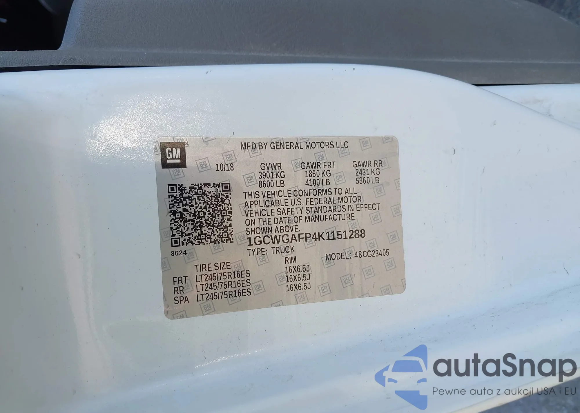• VIN: 1GCWGAFP4K1151288