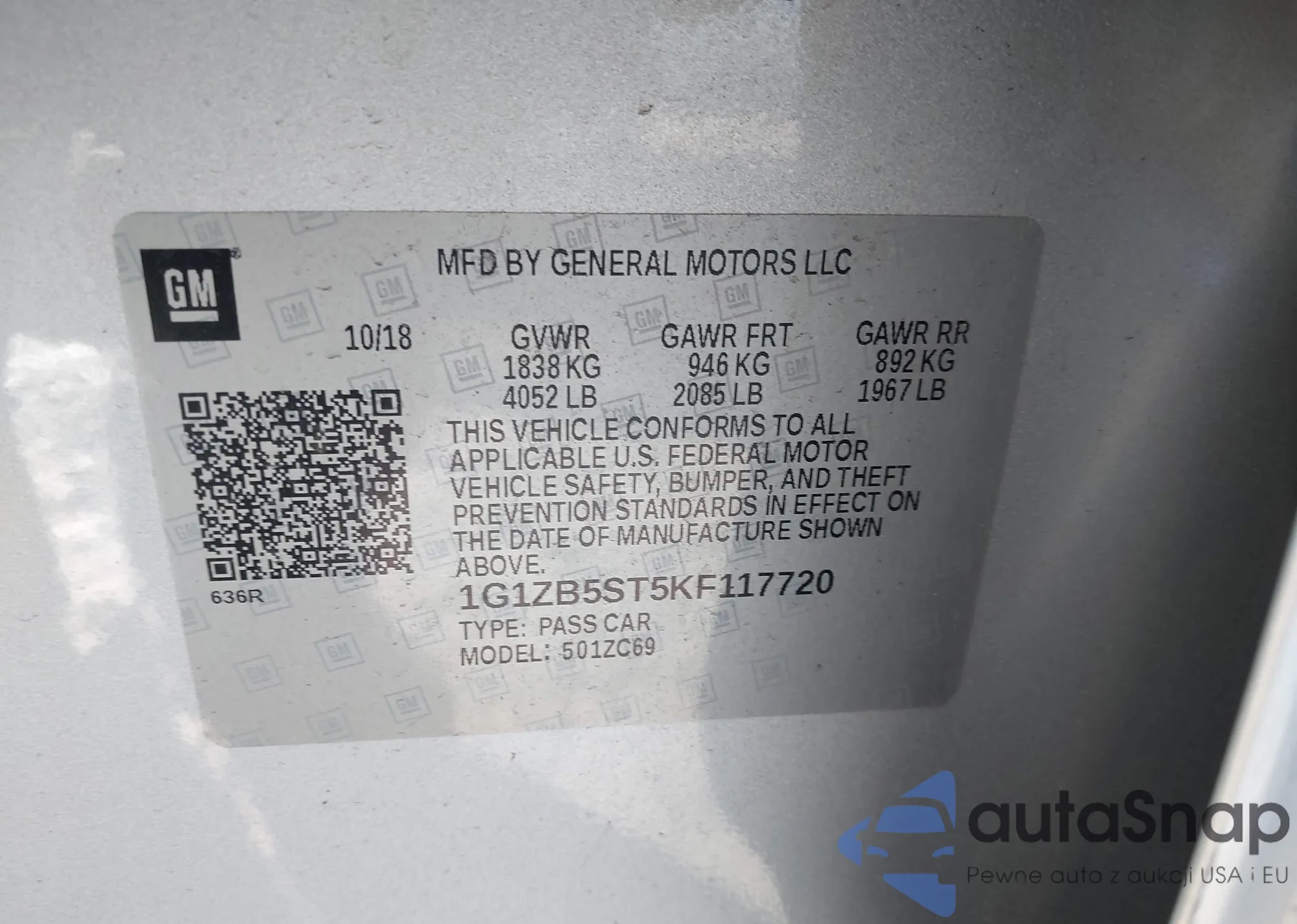 Автомобиль Chevrolet Malibu 2019 (VIN 1G1ZB5ST5KF117720) ранее не участвовал в торгах. Документы чистые, пробег соответствует или ниже среднего по рынку. Продаётся страховой компанией — рекомендуем покупку. Доставка в порт займет около 6–8 недель.