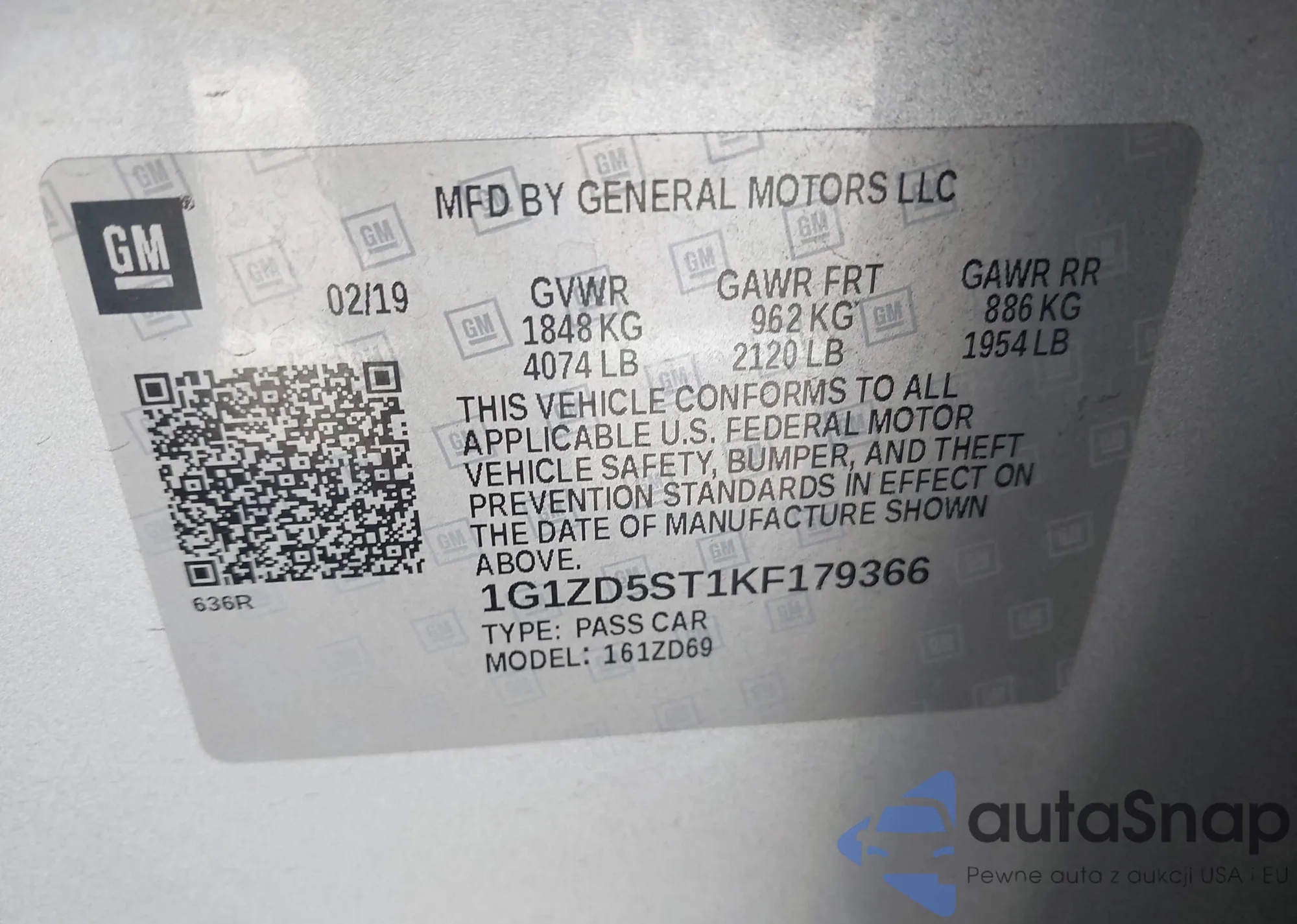 VIN: 1G1ZD5ST1KF179366
