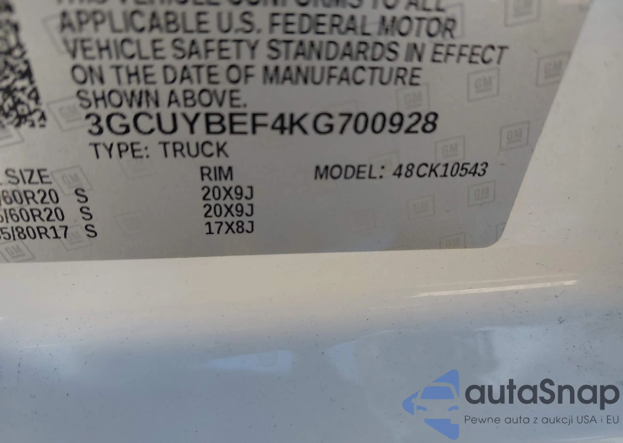 • VIN: 3GCUYBEF4KG700928