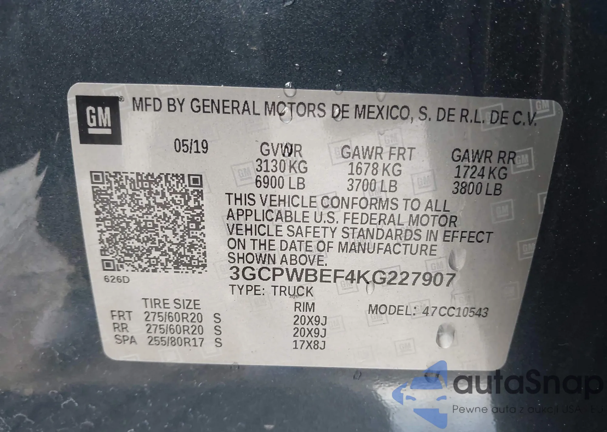 VIN: 3GCPWBEF4KG227907