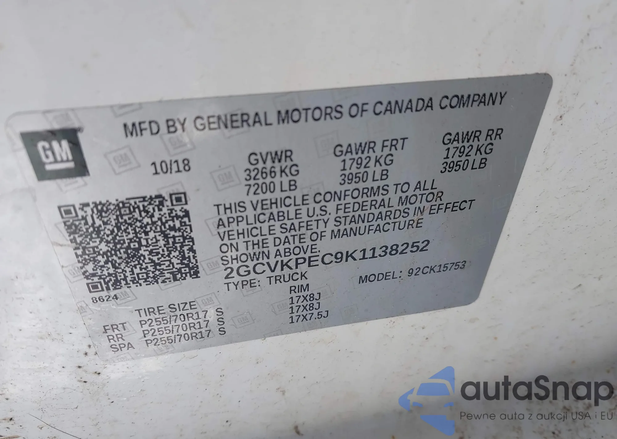 VIN: 2GCVKPEC9K1138252