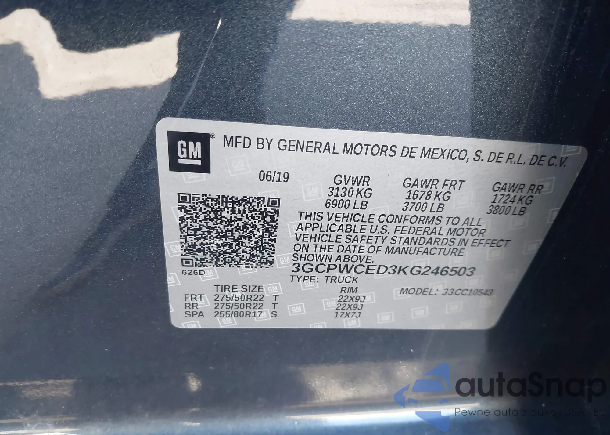 VIN: 3GCPWCED3KG246503