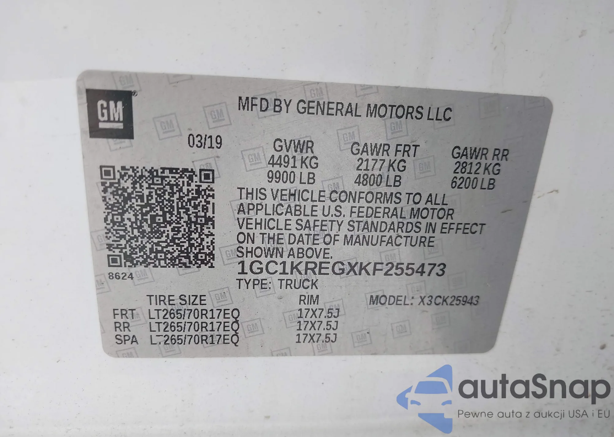 VIN: 1GC1KREGXKF255473
