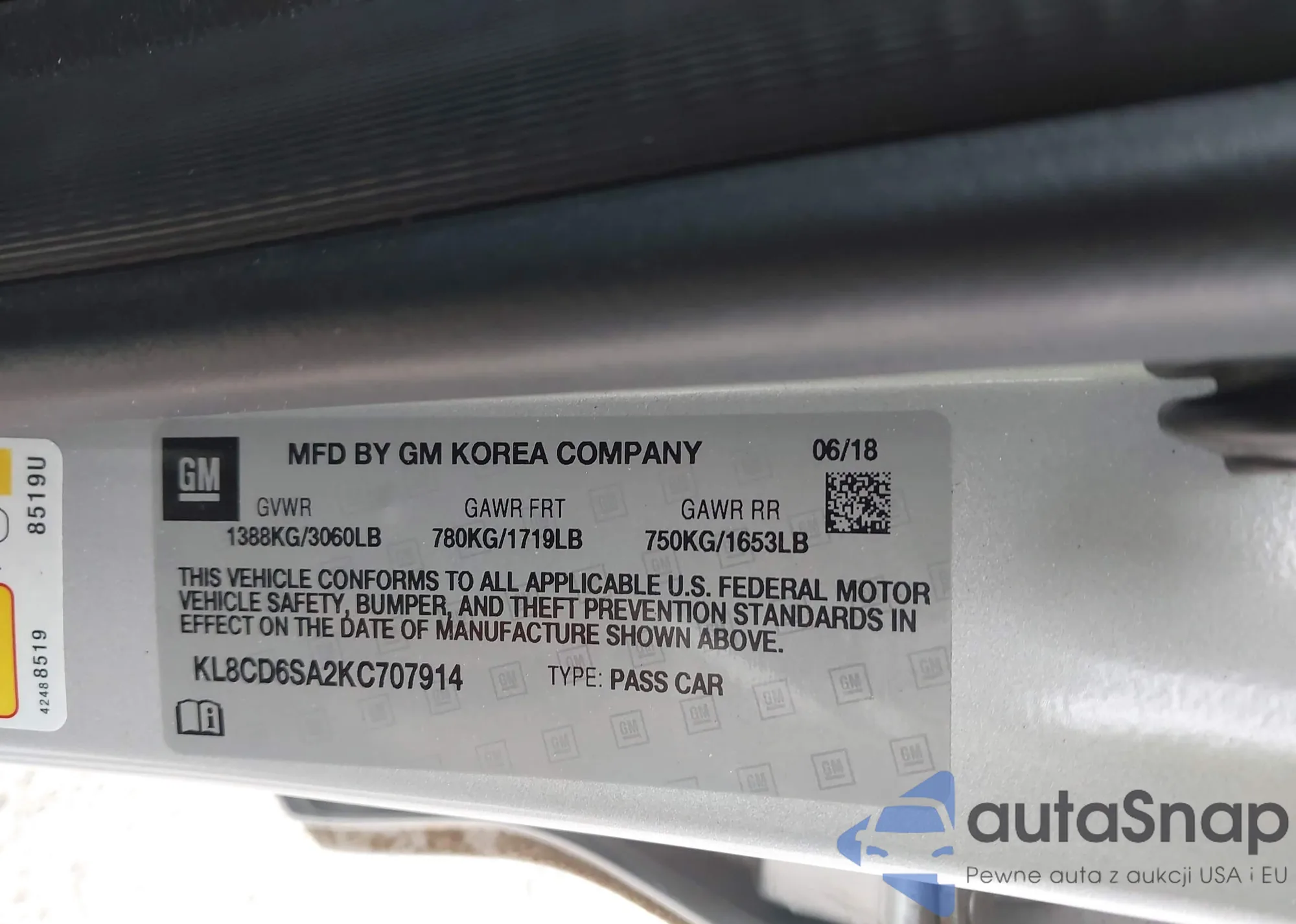 • VIN: KL8CD6SA2KC707914