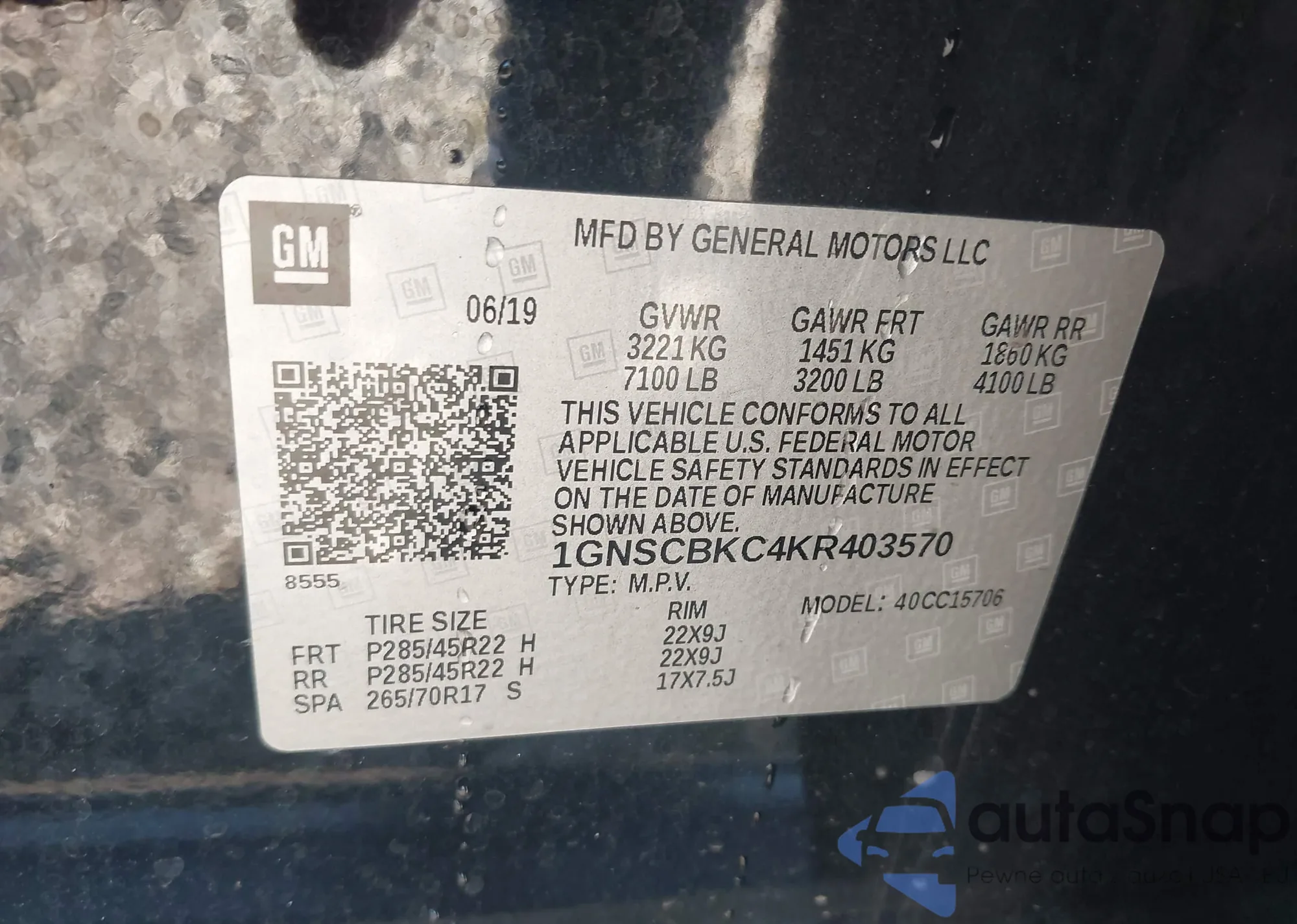• VIN: 1GNSCBKC4KR403570