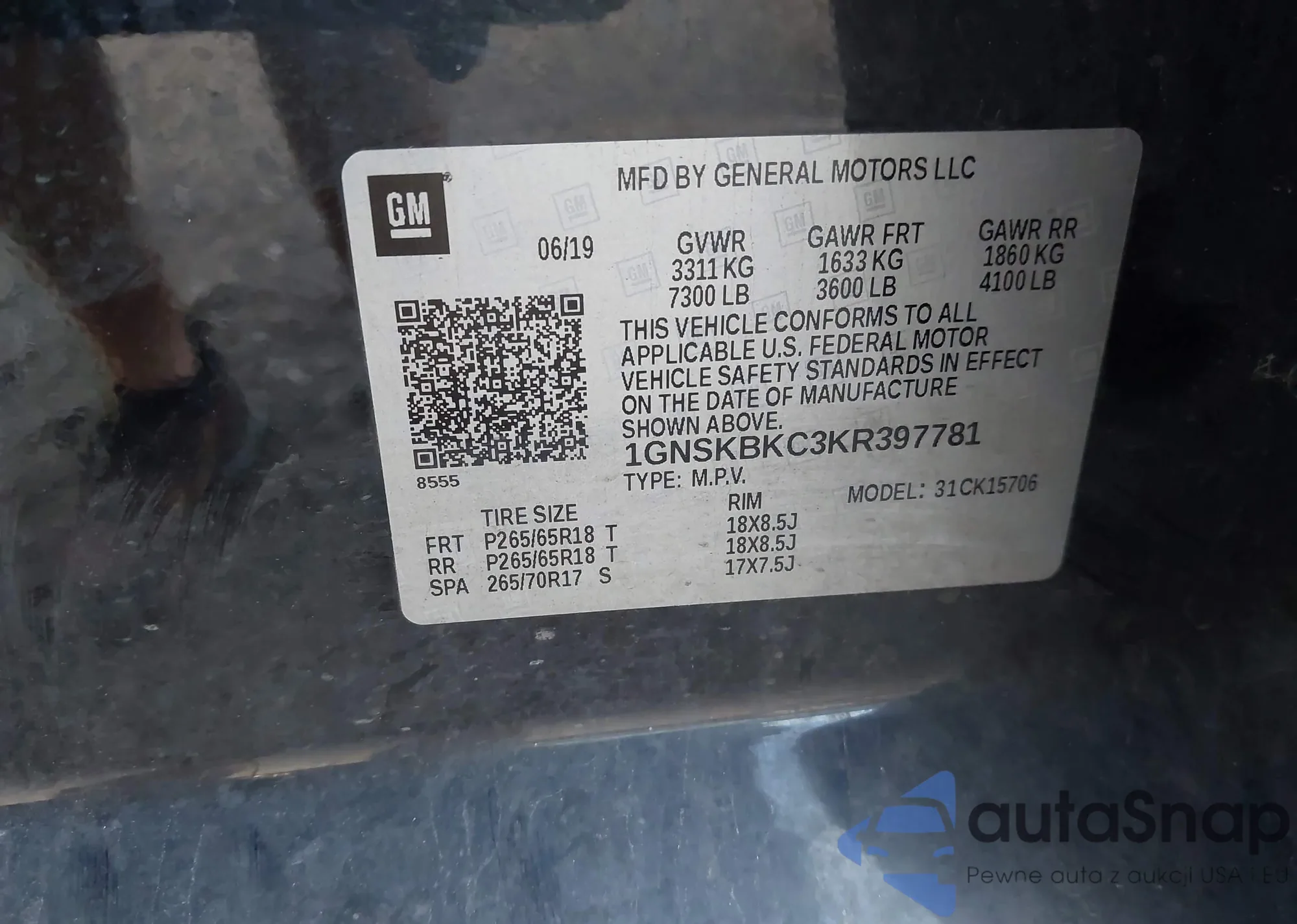 VIN: 1GNSKBKC3KR397781