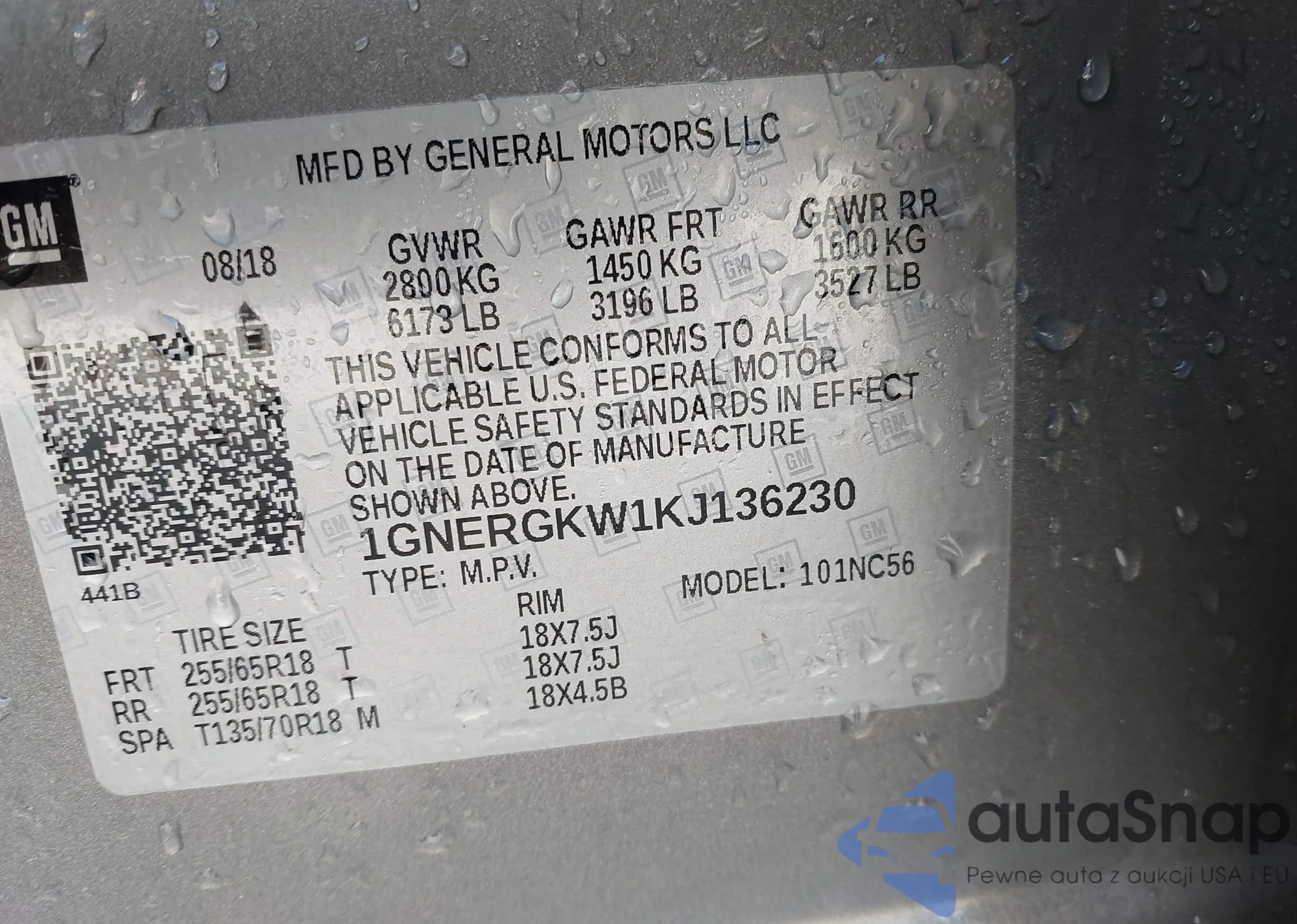 Автомобиль Chevrolet Traverse 2019 (VIN 1GNERGKW1KJ136230) ранее не участвовал в торгах. Документы чистые, пробег соответствует или ниже среднего по рынку. Продаётся страховой компанией — рекомендуем покупку. Доставка в порт займет около 6–8 недель.