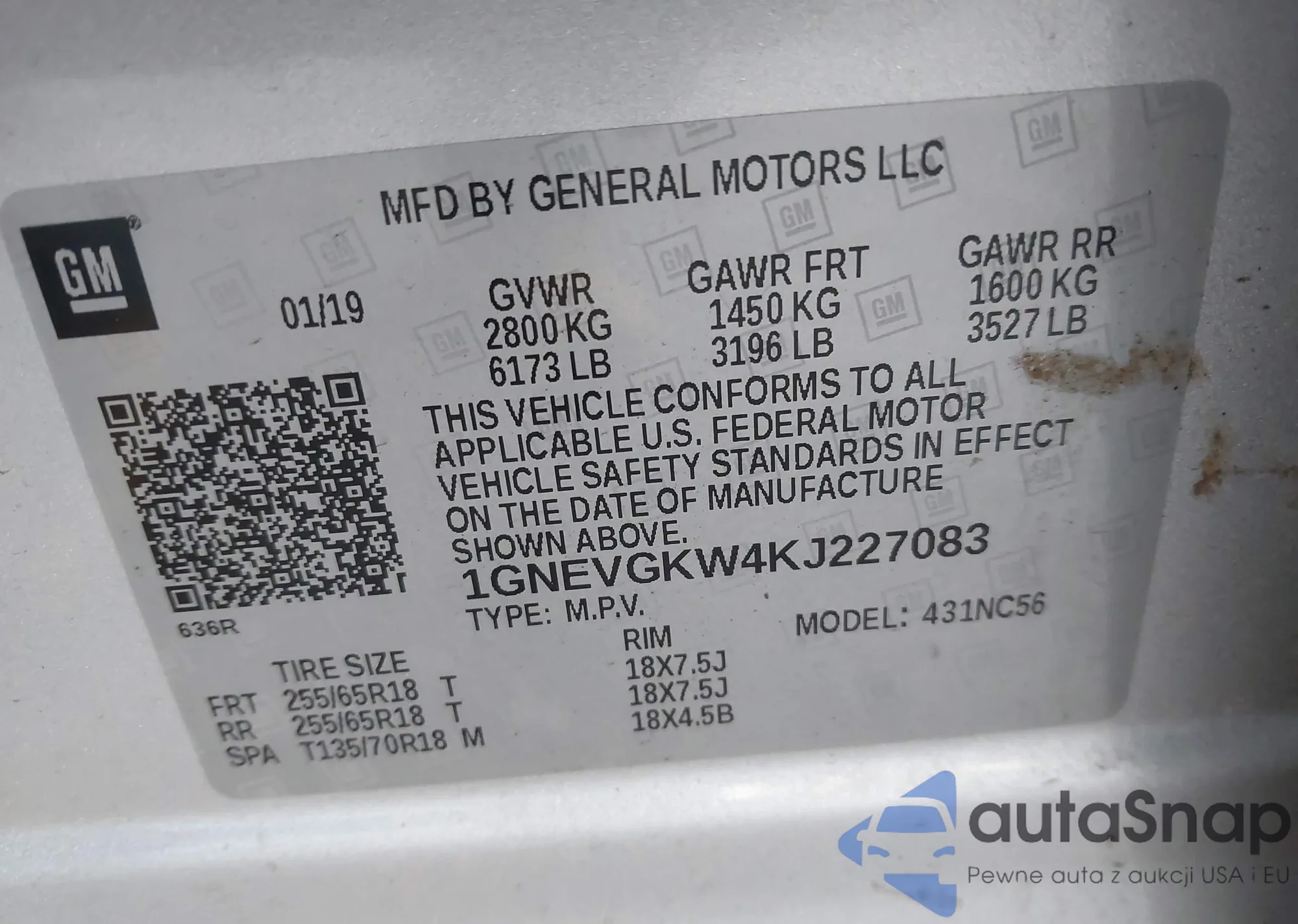 VIN: 1GNEVGKW4KJ227083