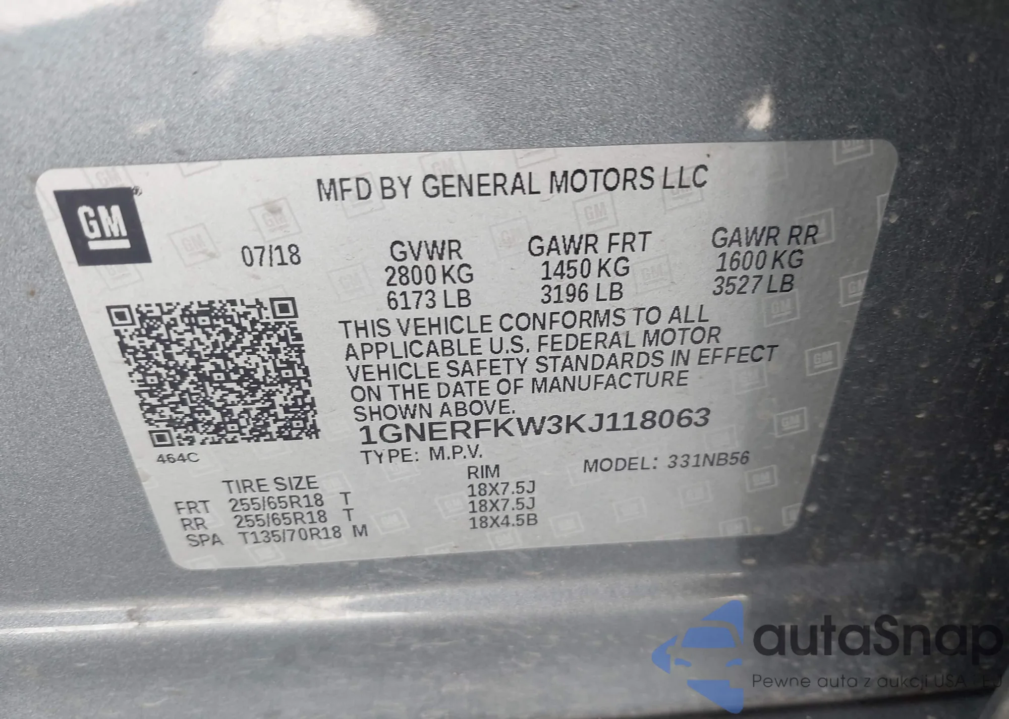 VIN: 1GNERFKW3KJ118063