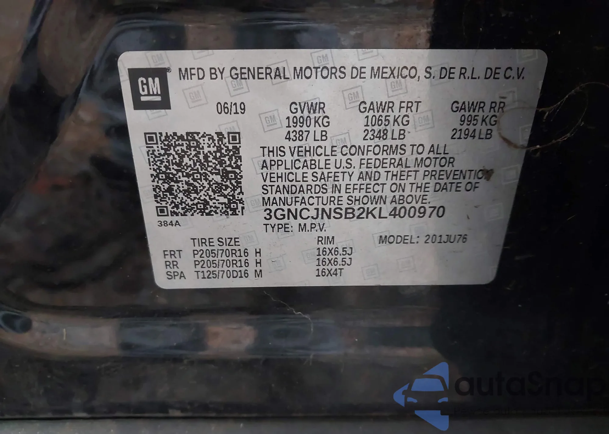VIN: 3GNCJNSB2KL400970