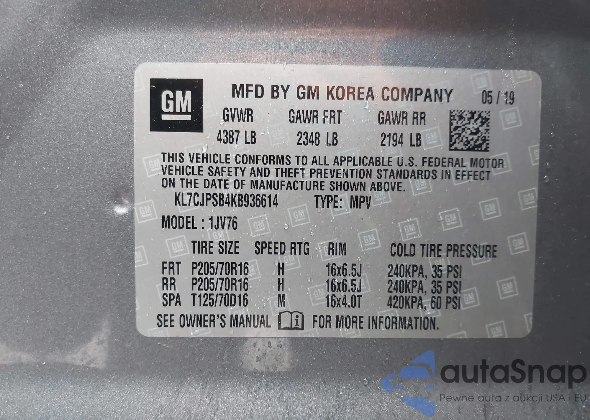 VIN: KL7CJPSB4KB936614