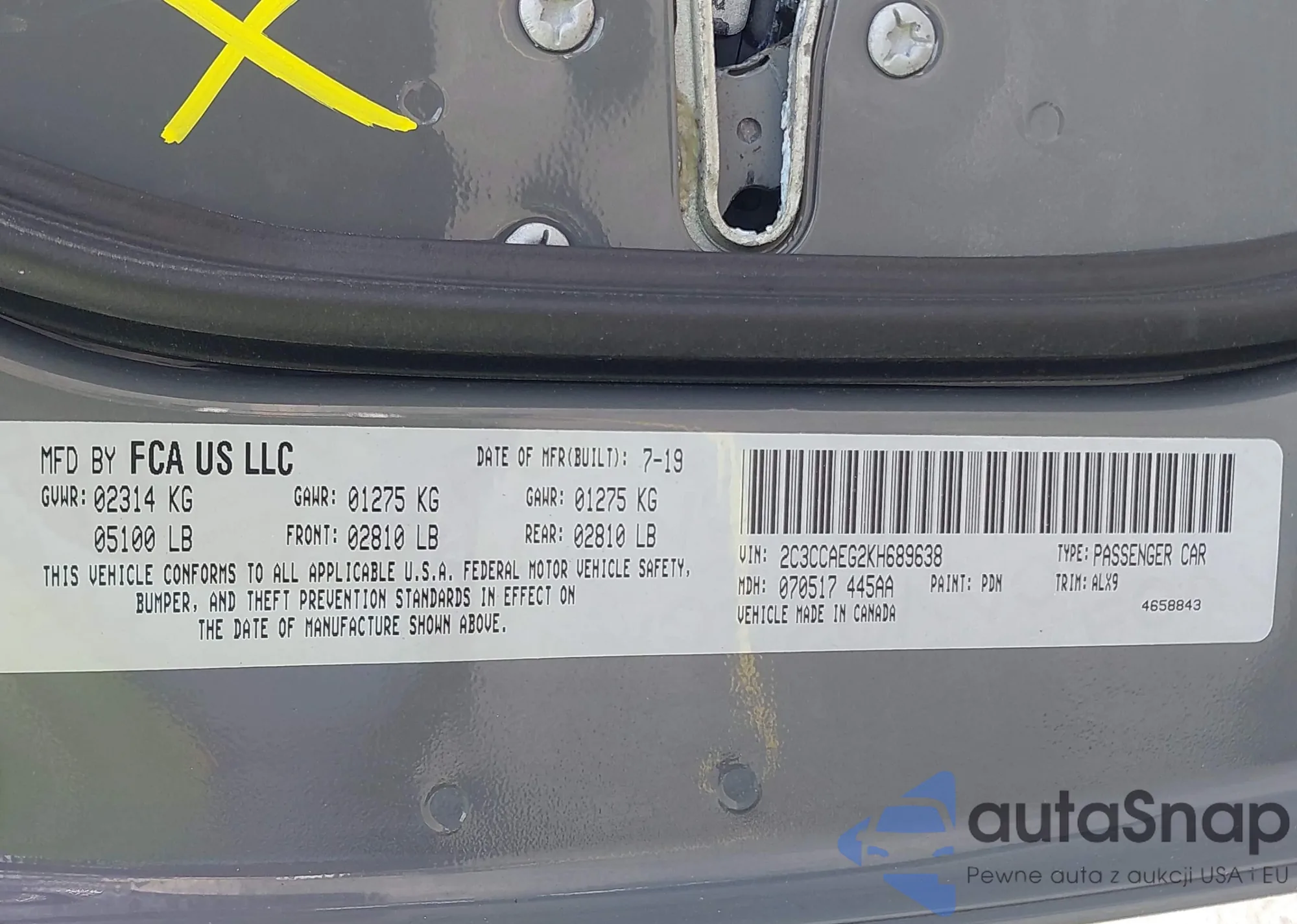 VIN: 2C3CCAEG2KH689638