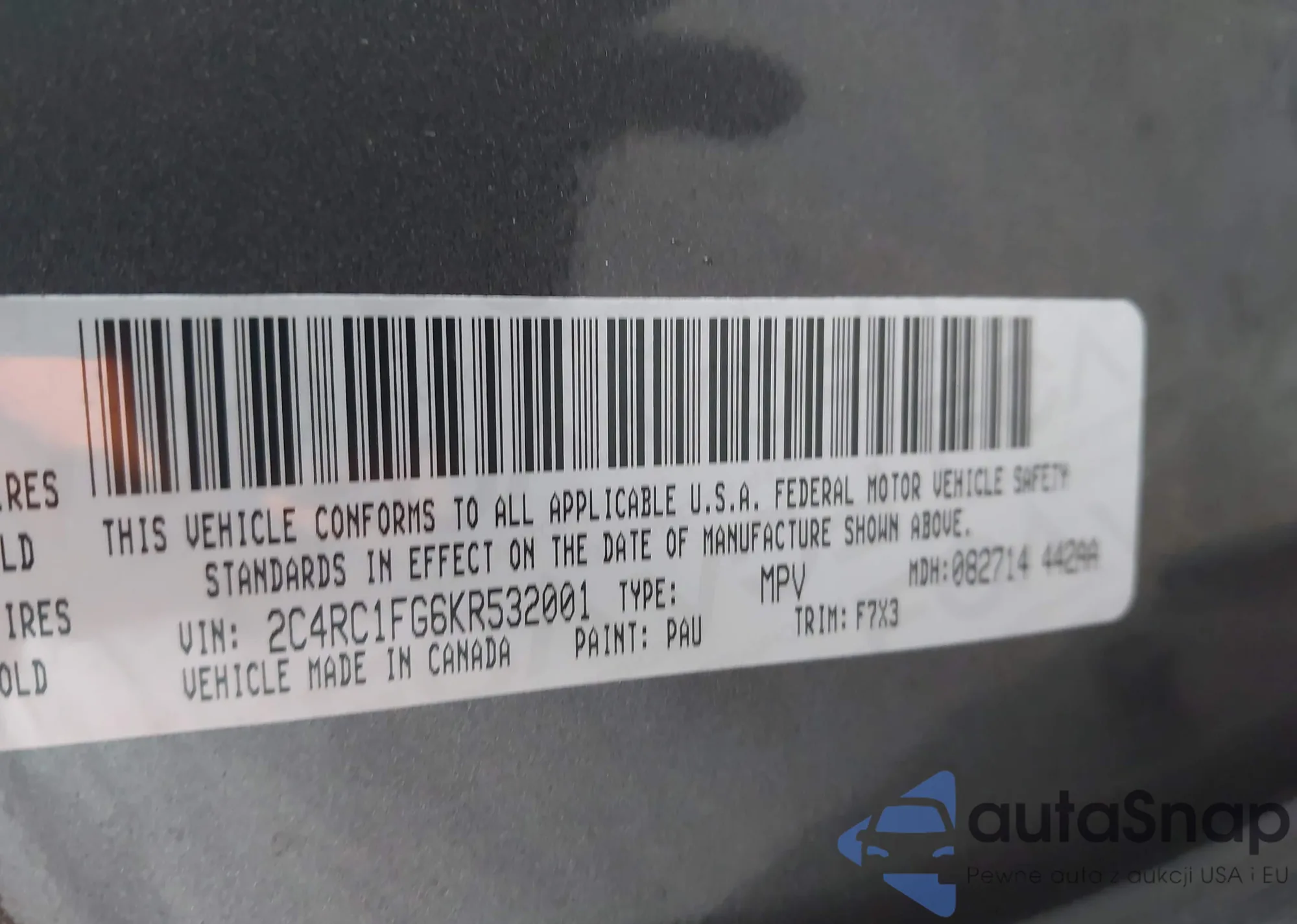 VIN: 2C4RC1FG6KR532001