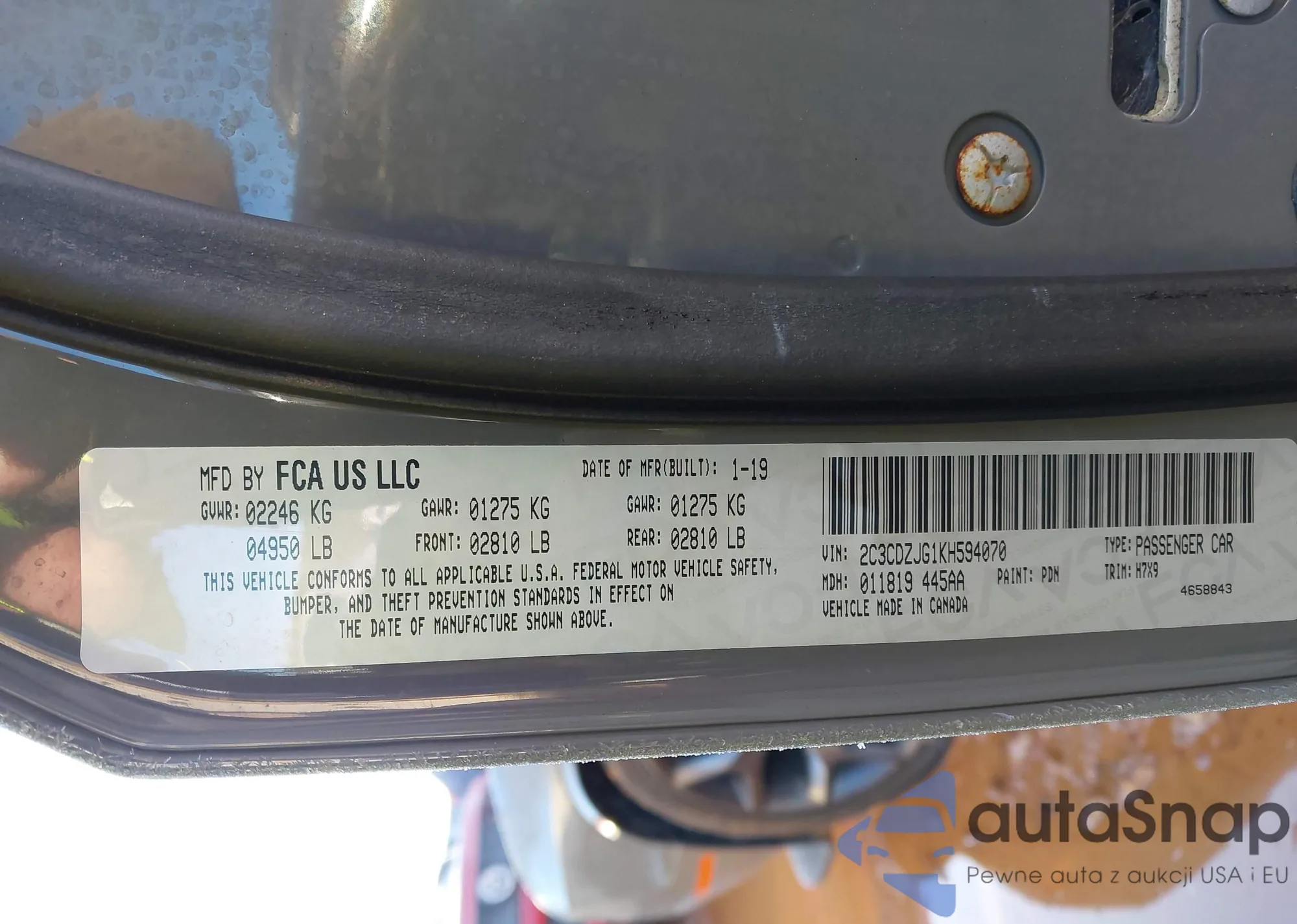 VIN: 2C3CDZJG1KH594070