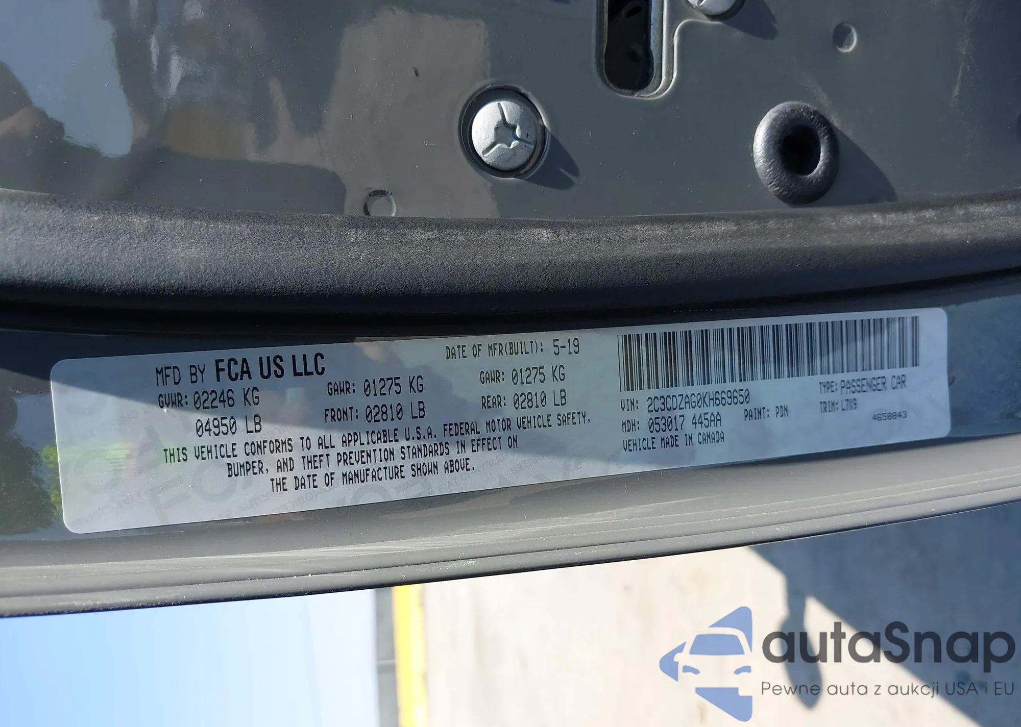 VIN: 2C3CDZAG0KH669650