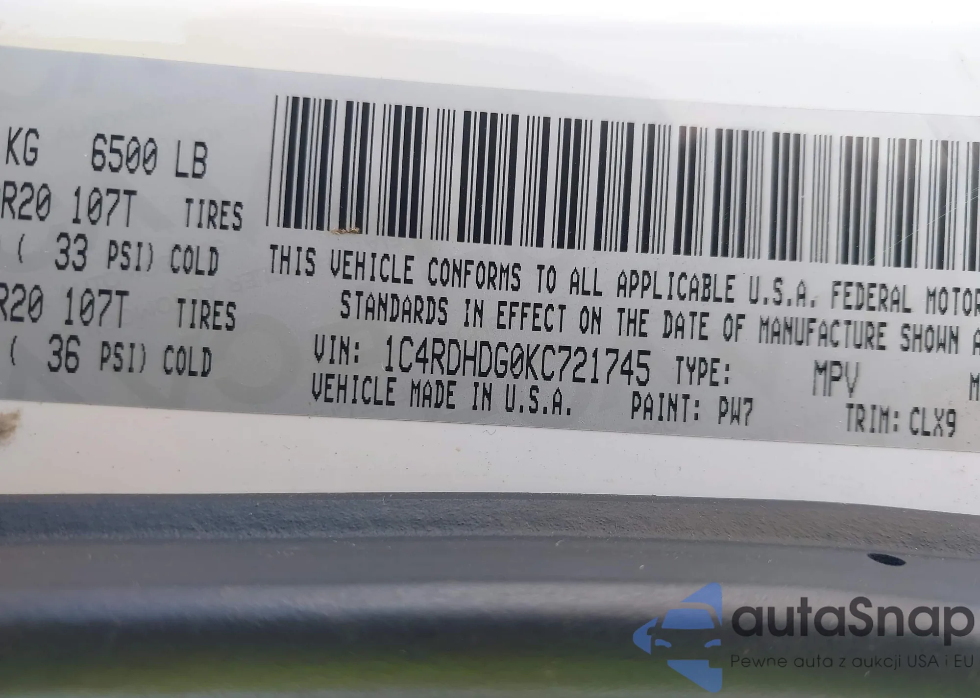 VIN: 1C4RDHDG0KC721745