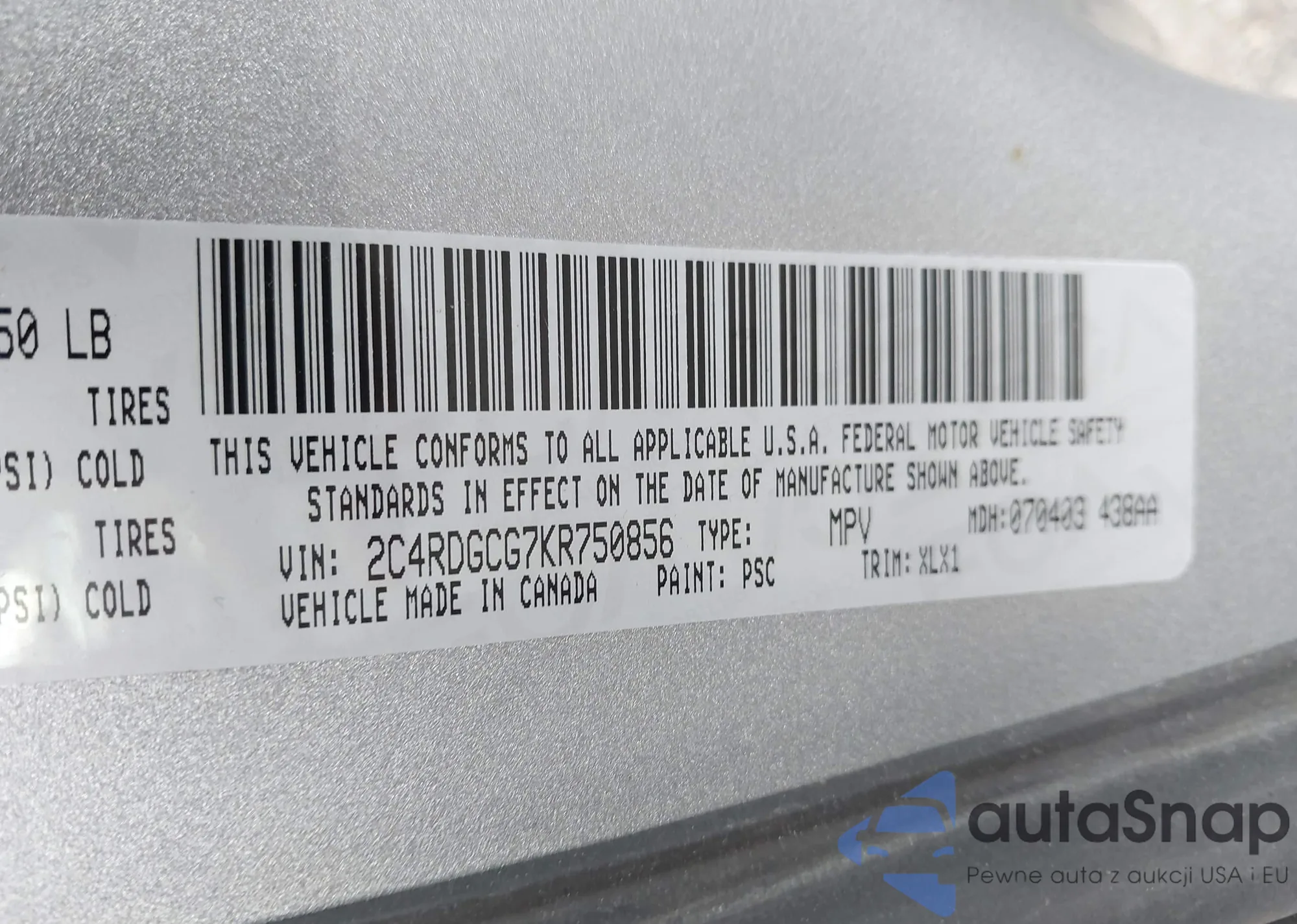 VIN: 2C4RDGCG7KR750856