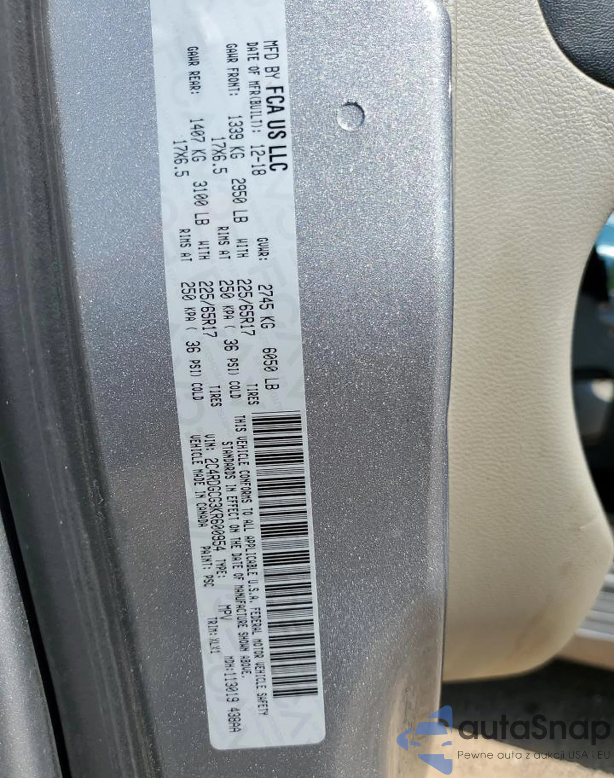VIN: 2C4RDGCG3KR600954