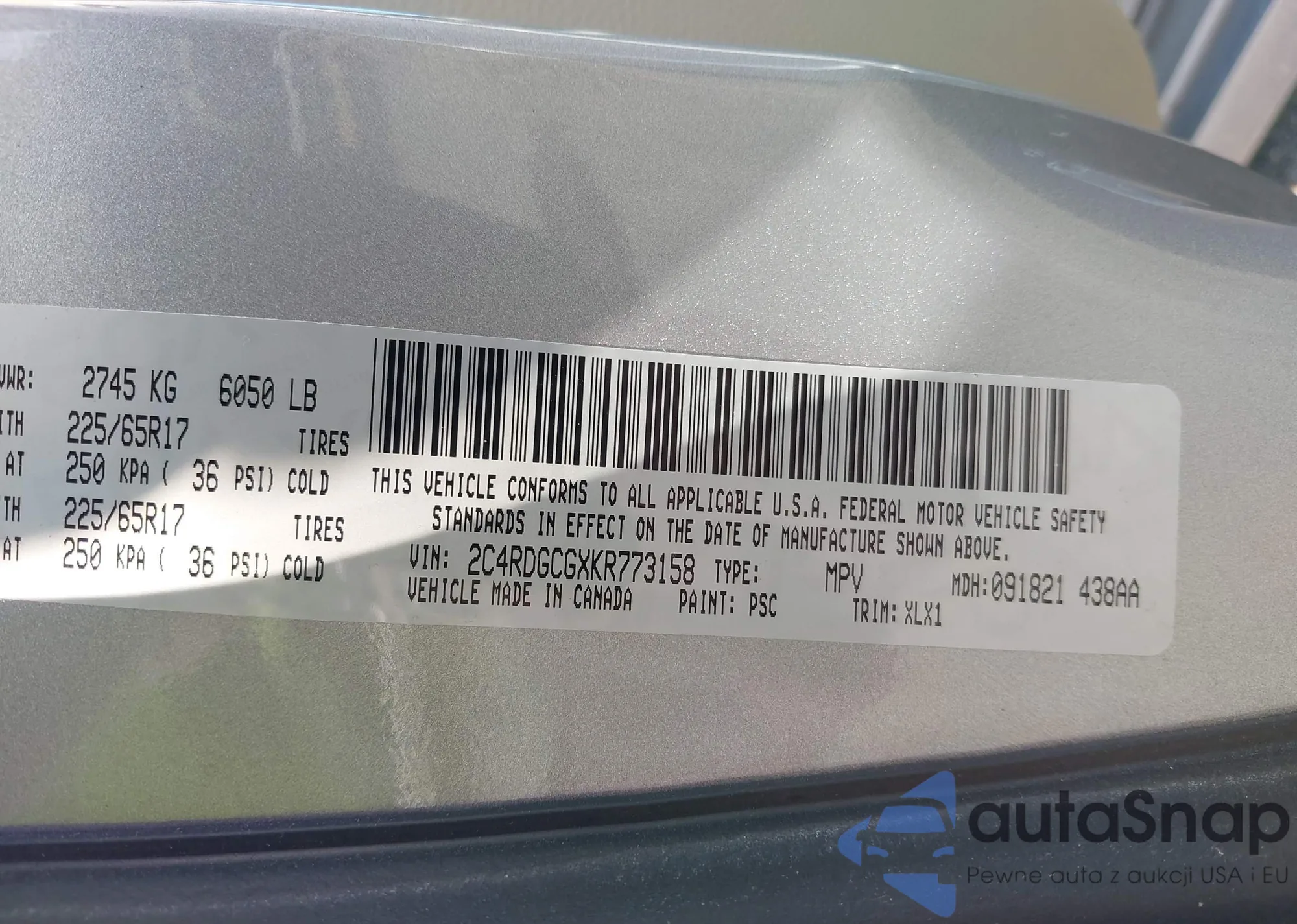 VIN: 2C4RDGCGXKR773158