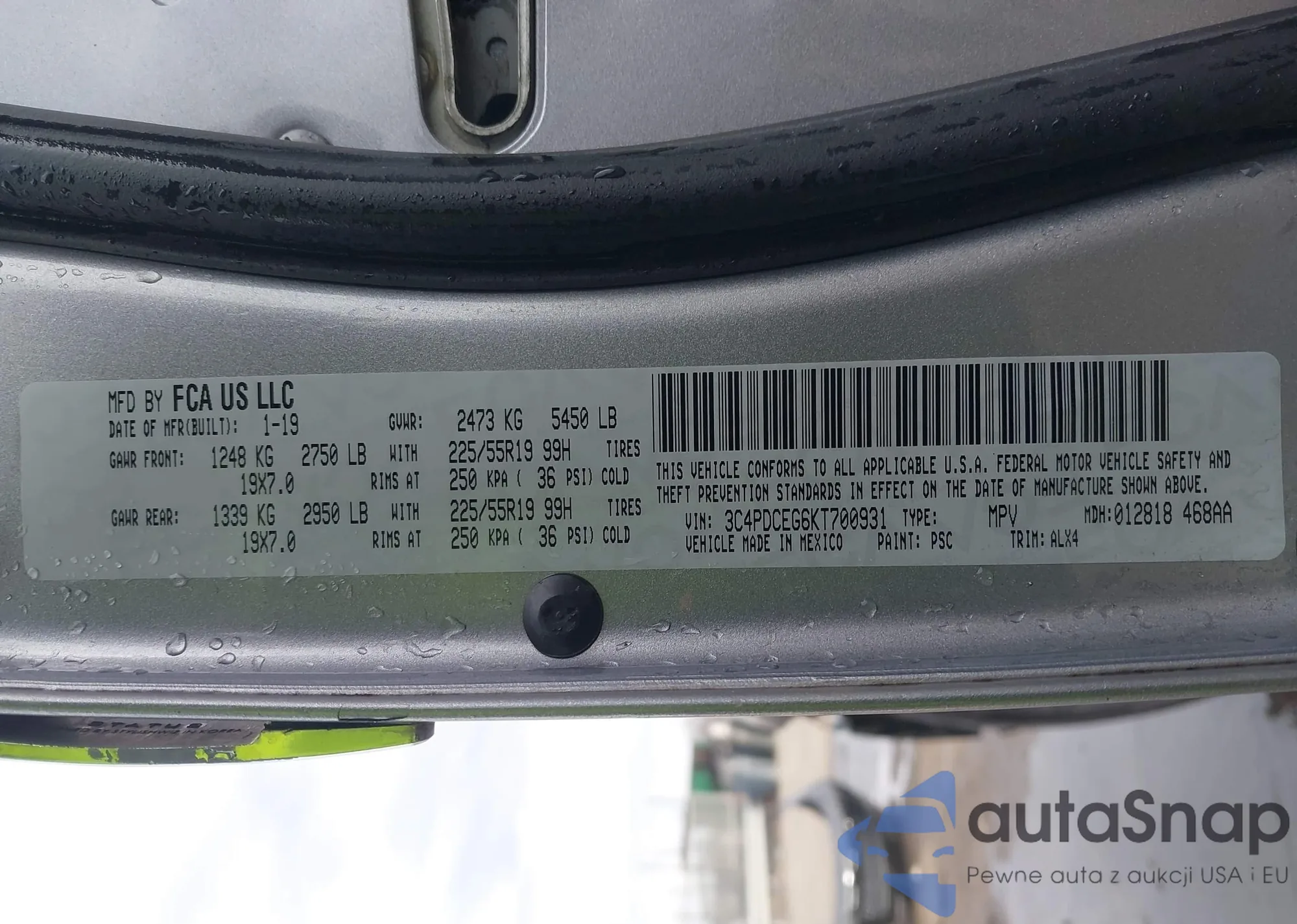 Автомобиль Dodge Journey 2019 (VIN 3C4PDCEG6KT700931) ранее не участвовал в торгах. Документы чистые, пробег соответствует или ниже среднего по рынку. Продаётся страховой компанией — рекомендуем покупку. Доставка в порт займет около 6–8 недель.