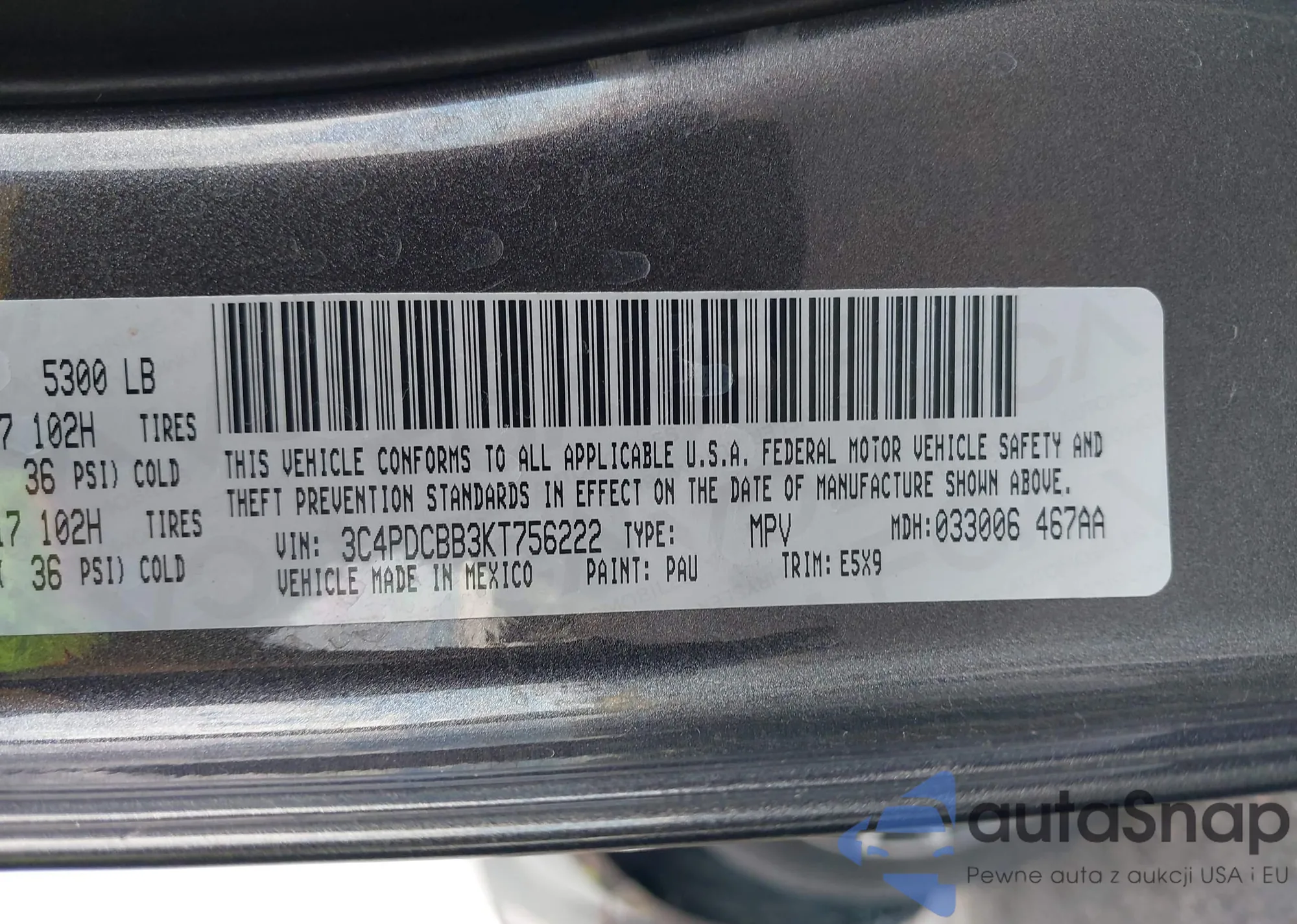 VIN: 3C4PDCBB3KT756222