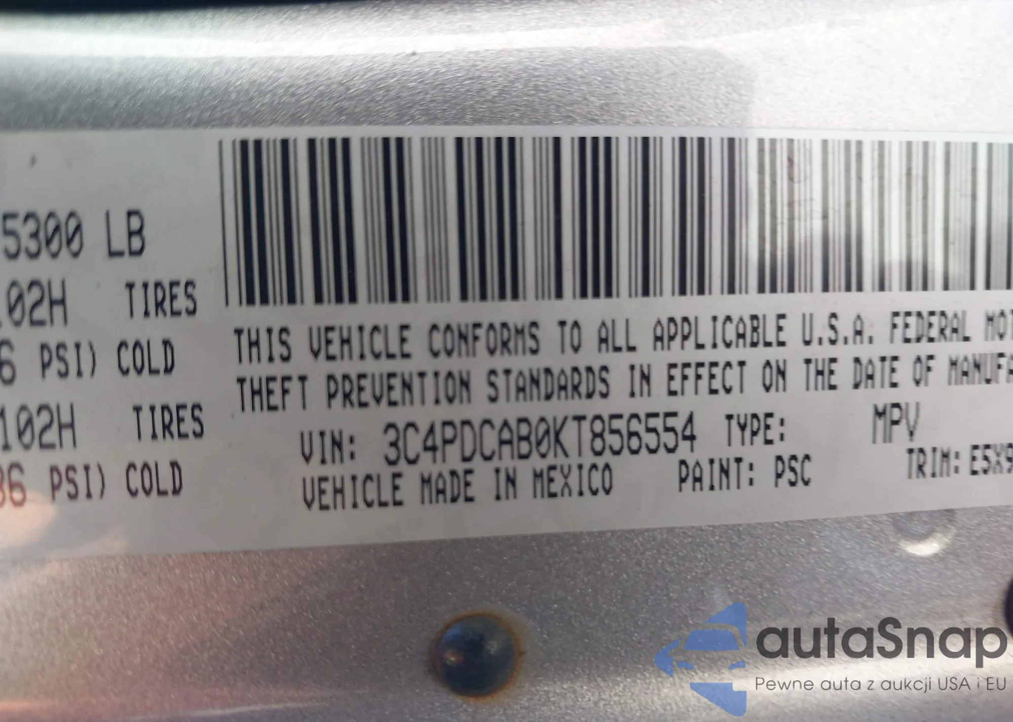 • VIN: 3C4PDCAB0KT856554