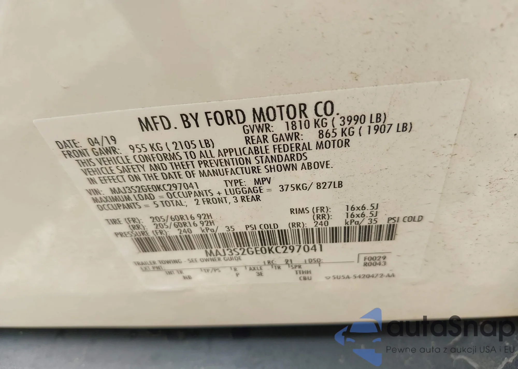 VIN: MAJ3S2GE0KC297041