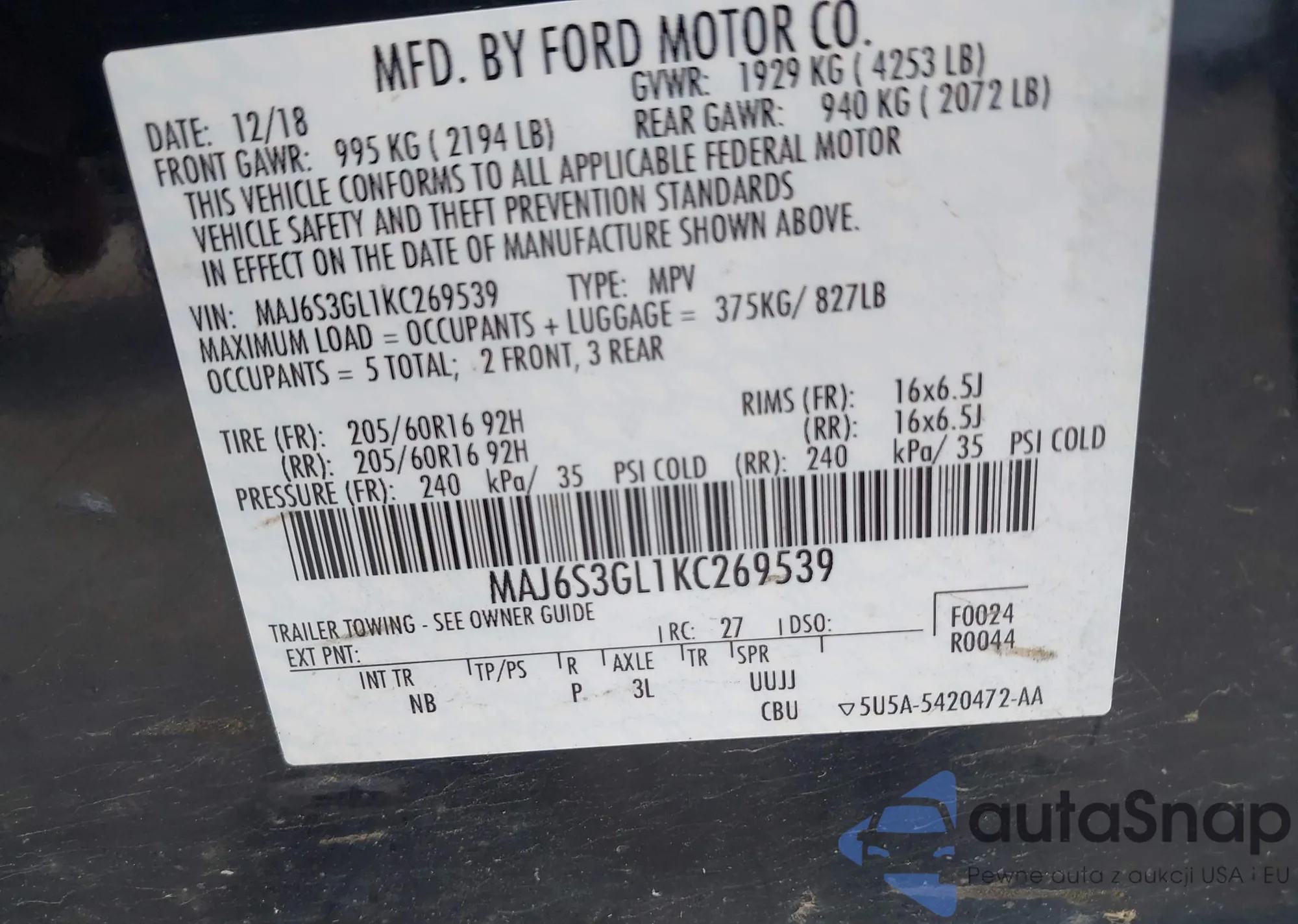 VIN: MAJ6S3GL1KC269539