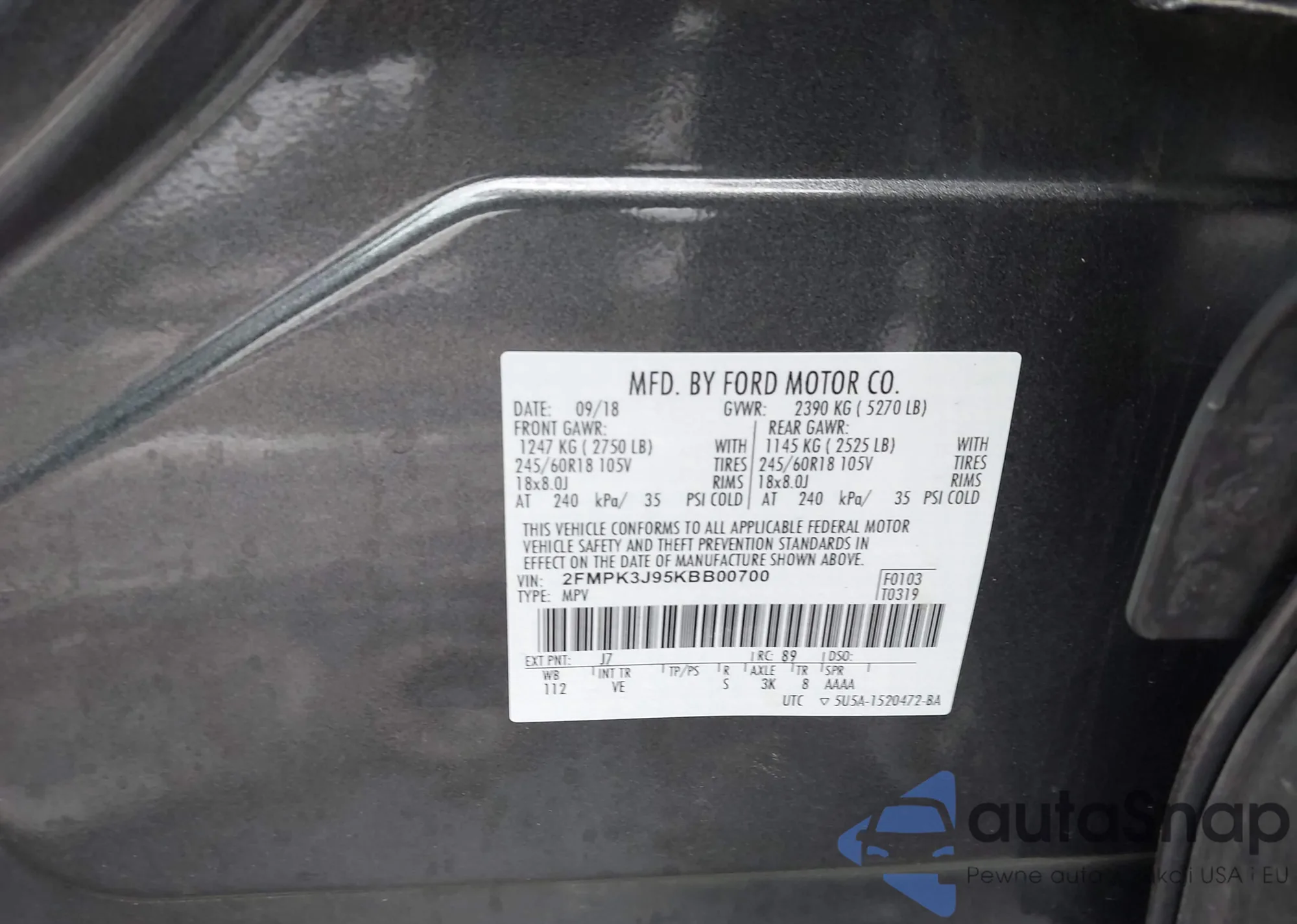 VIN: 2FMPK3J95KBB00700