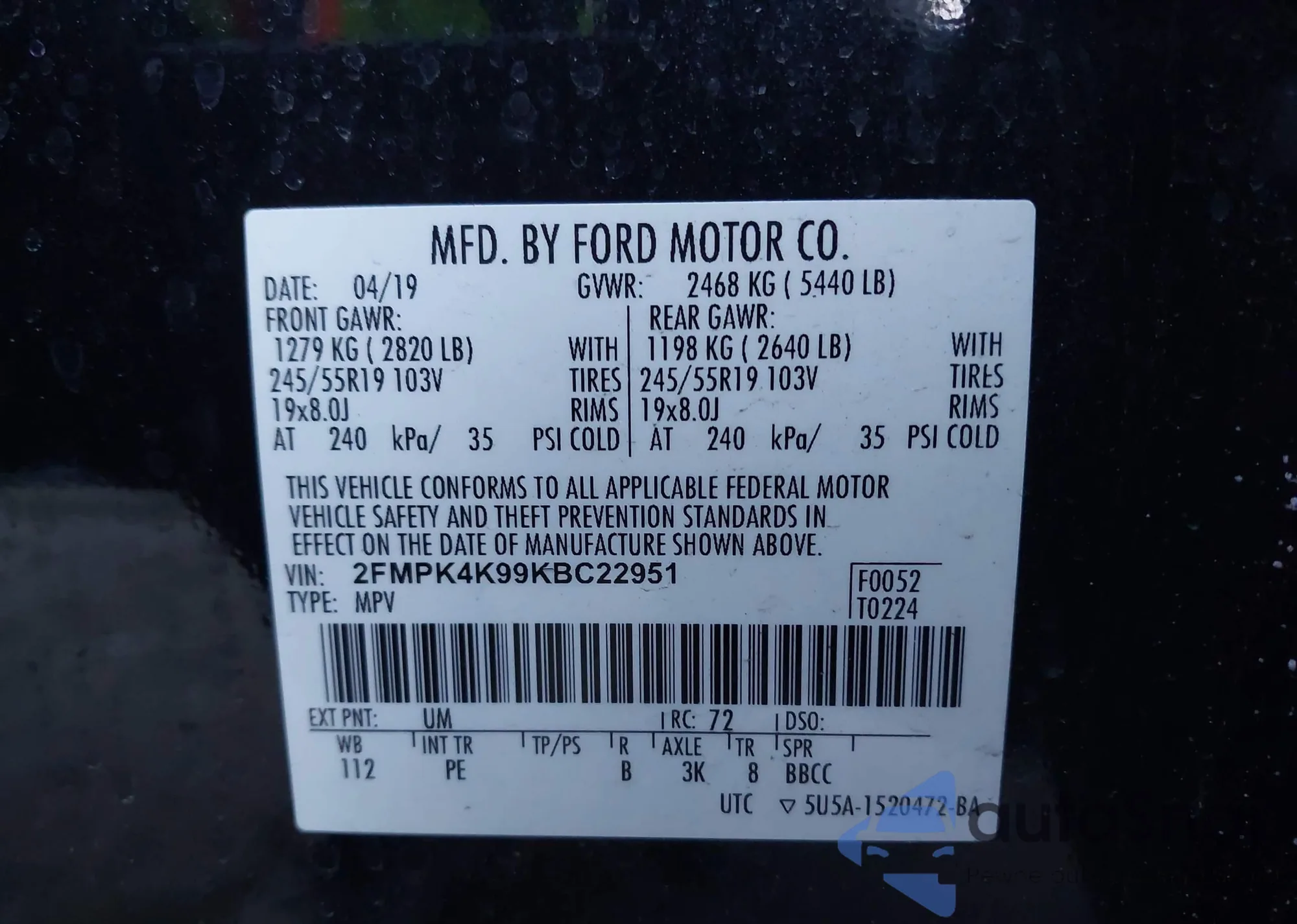 VIN: 2FMPK4K99KBC22951
