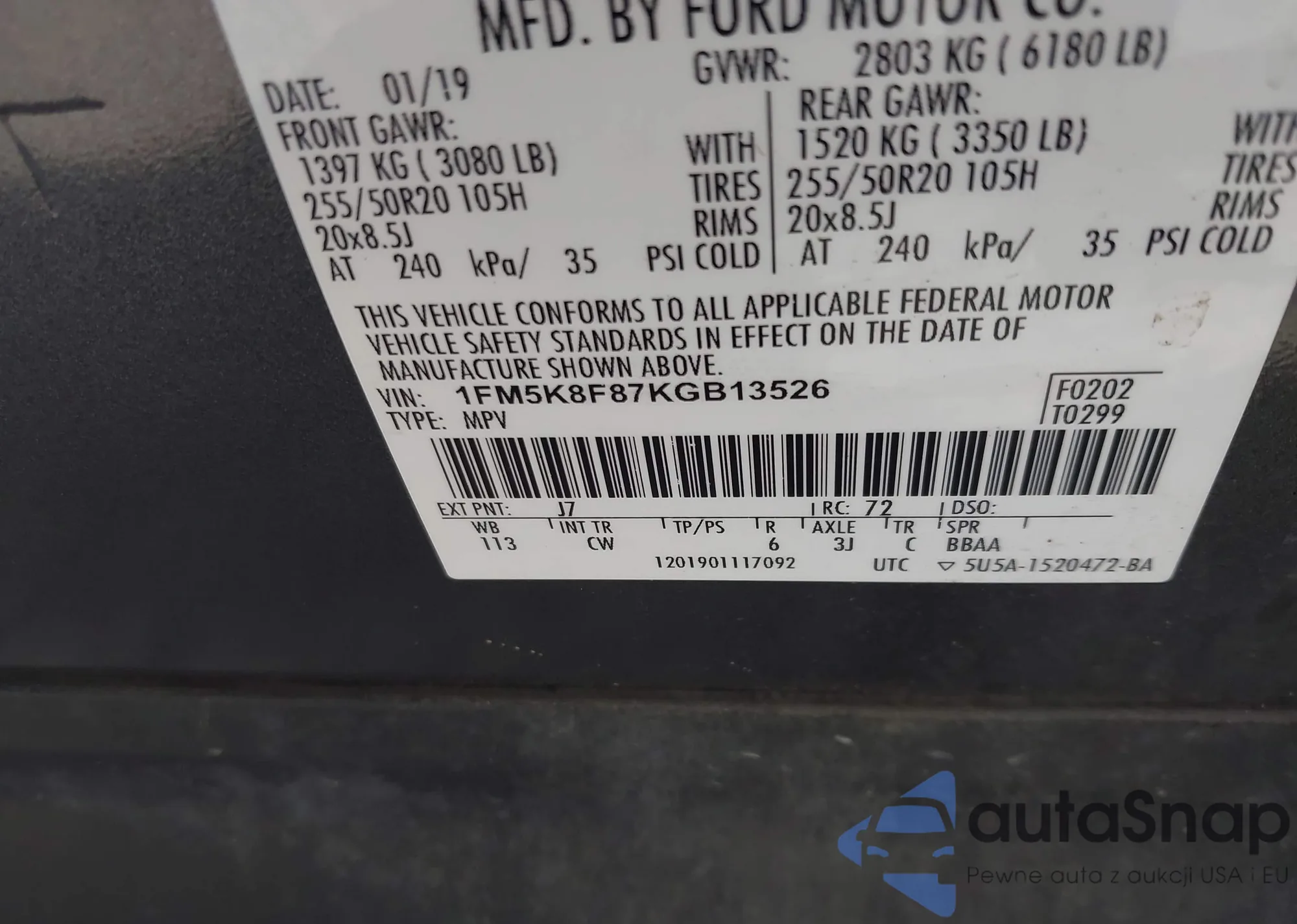 VIN: 1FM5K8F87KGB13526