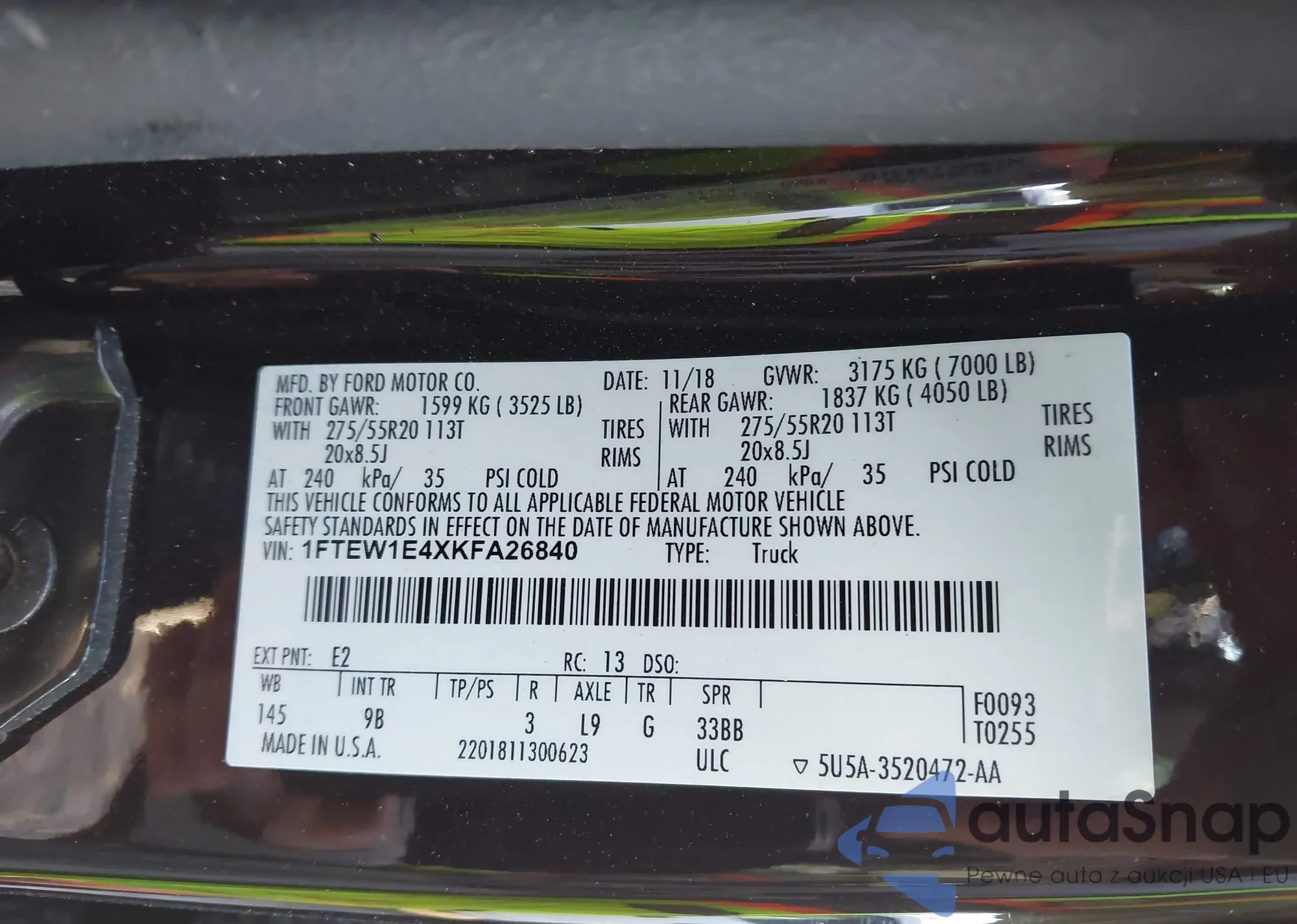 Автомобиль Ford F-150 2019 (VIN 1FTEW1E4XKFA26840) ранее не участвовал в торгах. Документы чистые, пробег соответствует или ниже среднего по рынку. Продаётся страховой компанией — рекомендуем покупку. Доставка в порт займет около 6–8 недель.
