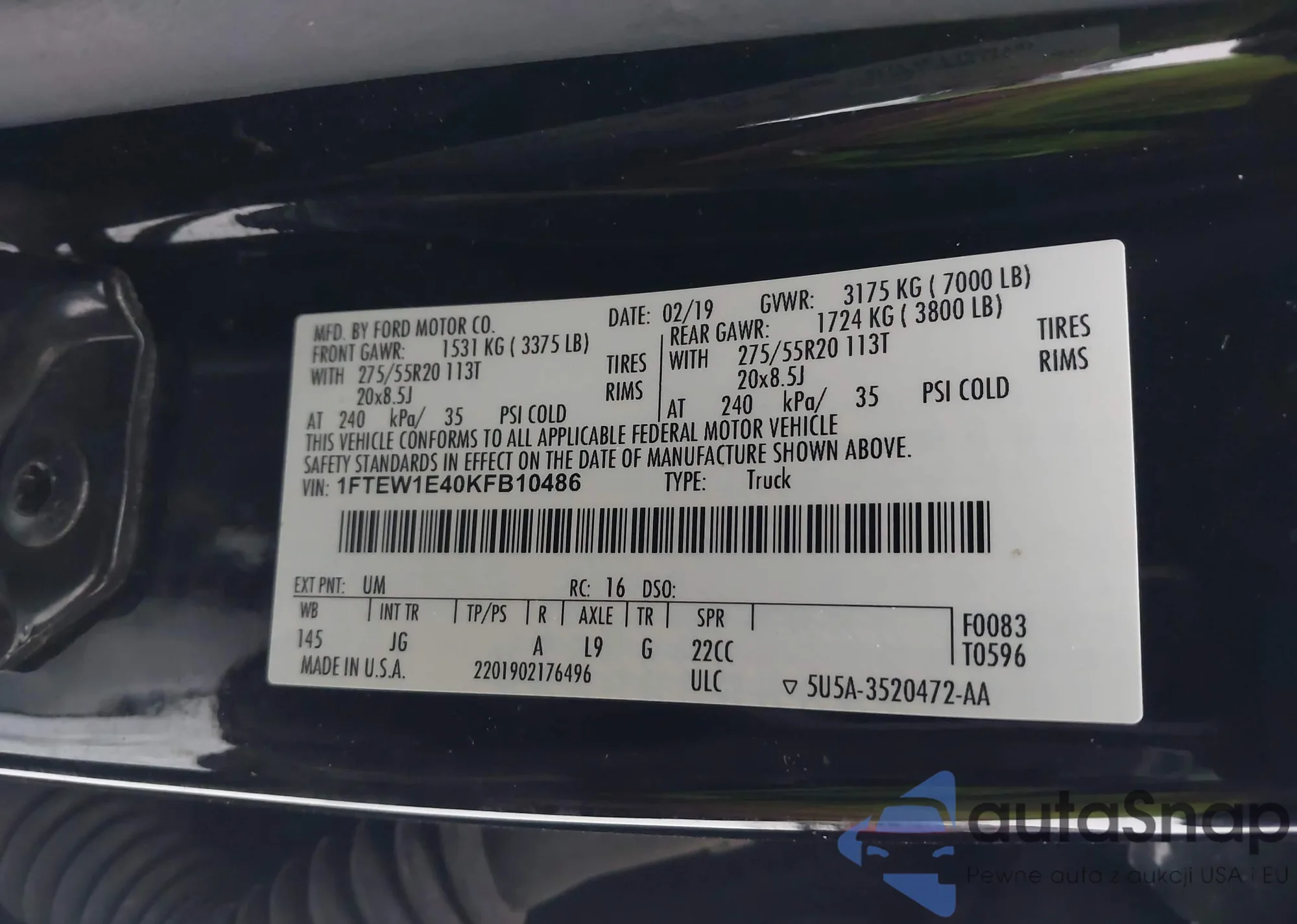 Автомобиль Ford F-150 2019 (VIN 1FTEW1E40KFB10486) ранее не участвовал в торгах. Документы чистые, пробег соответствует или ниже среднего по рынку. Продаётся страховой компанией — рекомендуем покупку. Доставка в порт займет около 6–8 недель.